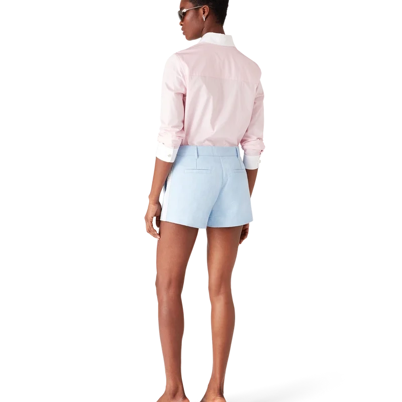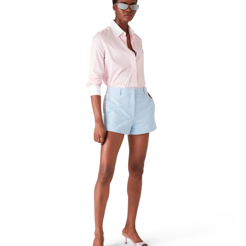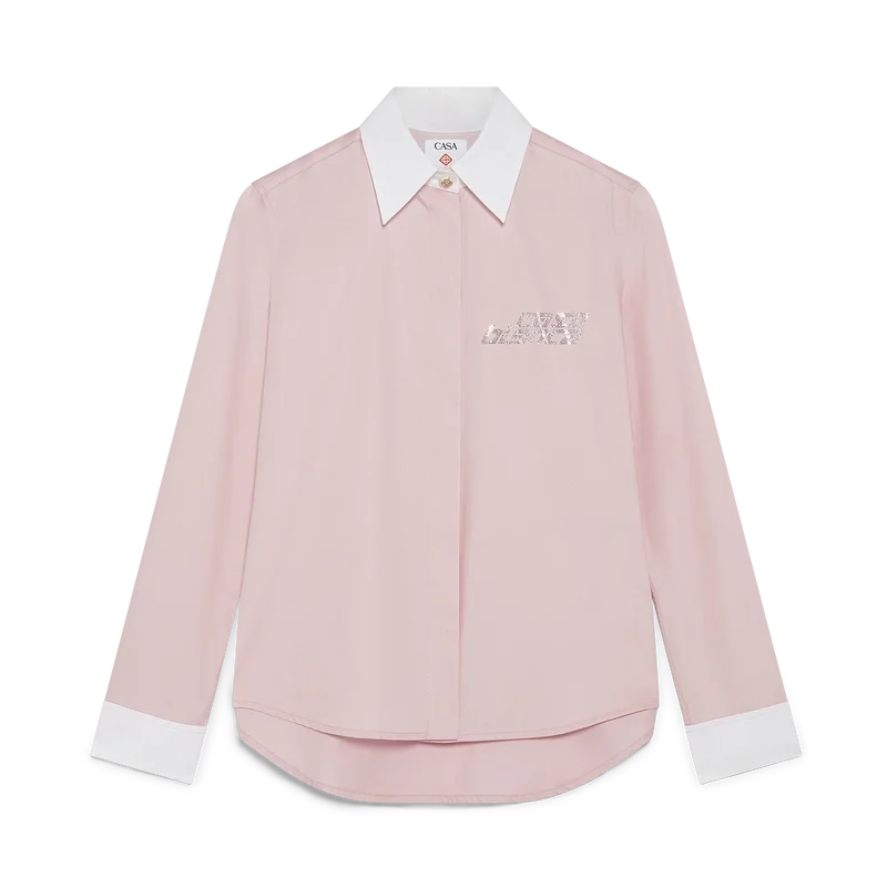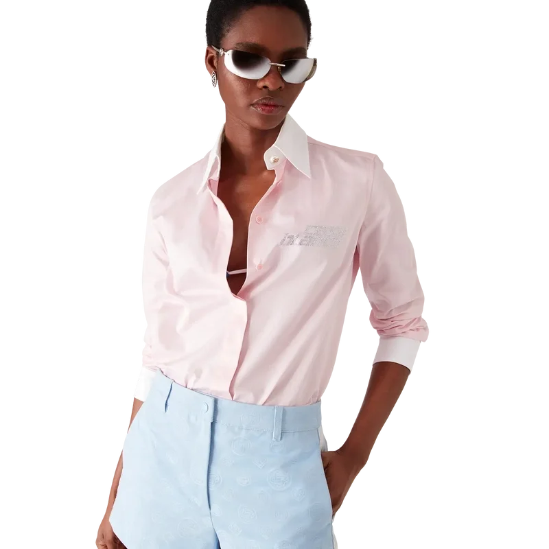 La camicia a maniche lunghe Crystal presenta un design sartoriale impreziosito da un’applicazione con logo in cristallo. Completata da polsini bianchi a contrasto e colletto a punta, chiusura con bottoni nascosti, bottoni in corozo con logo CC intrecciato e bottoni in madreperla con logo CC intrecciato su colletto e polsini.
