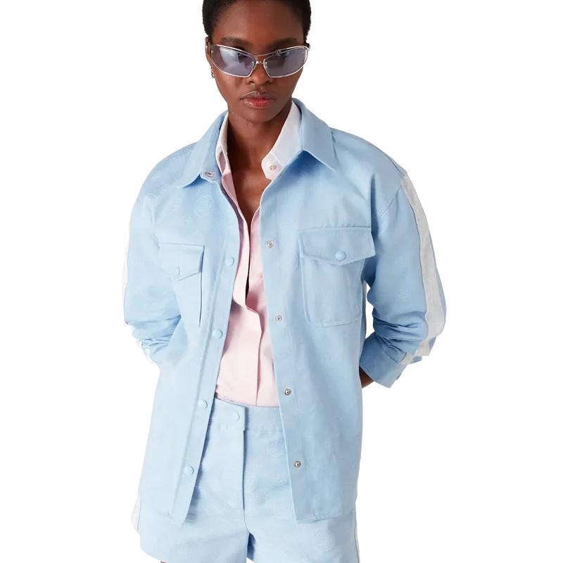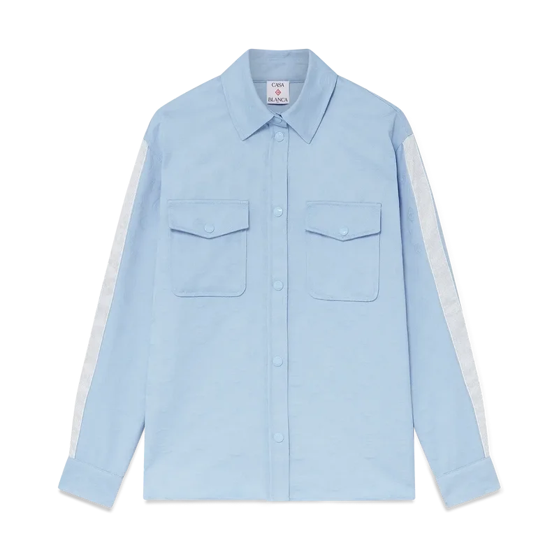 La camicia blu a maniche lunghe con Monogram è un modello classico caratterizzato dalla stampa Monogram iconica della Maison. Rifinita con chiusura a bottoni, colletto a punta, tasche sul petto e inserti in seta lungo le maniche.