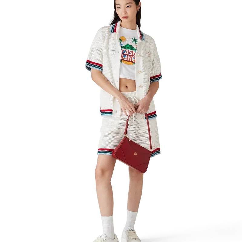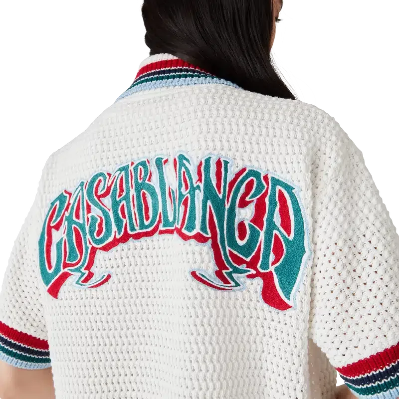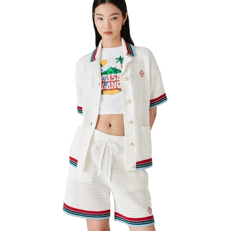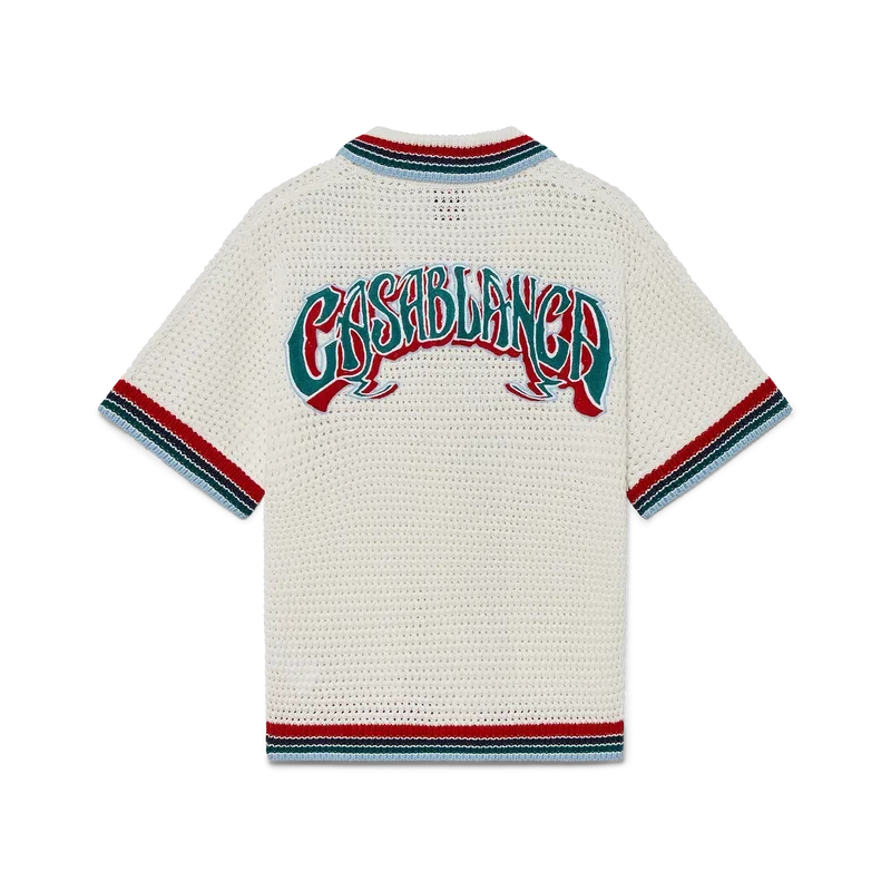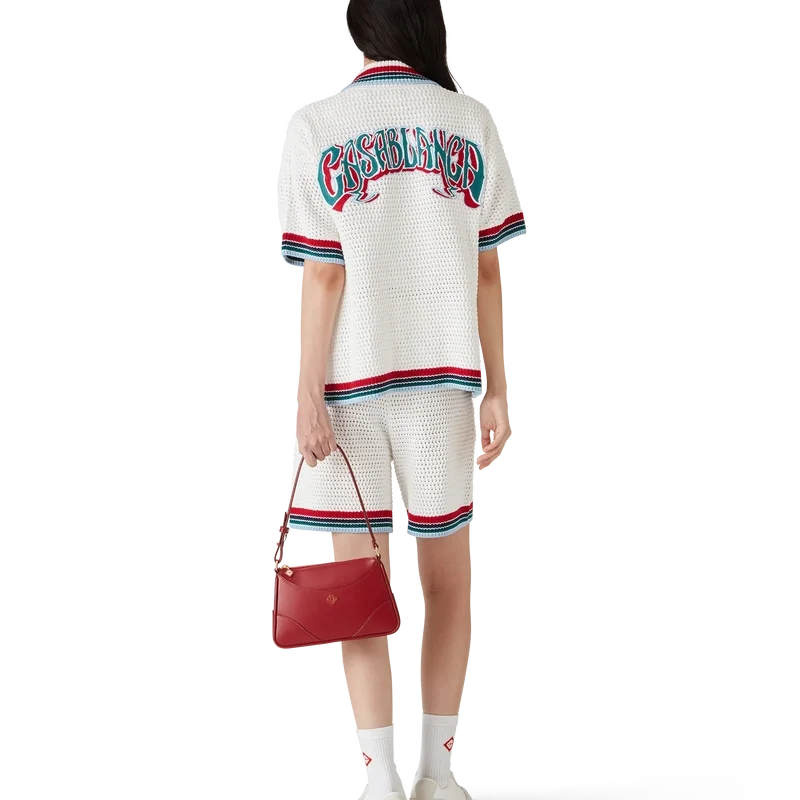 La camicia gotica all’uncinetto è un modello a maniche corte realizzato in tessuto di cotone all’uncinetto e presenta il logo a rombi iconico della Maison. Completata da bottoni in madreperla con bordo dorato, tasche applicate sul davanti e bordi a righe su colletto, polsini e orlo.