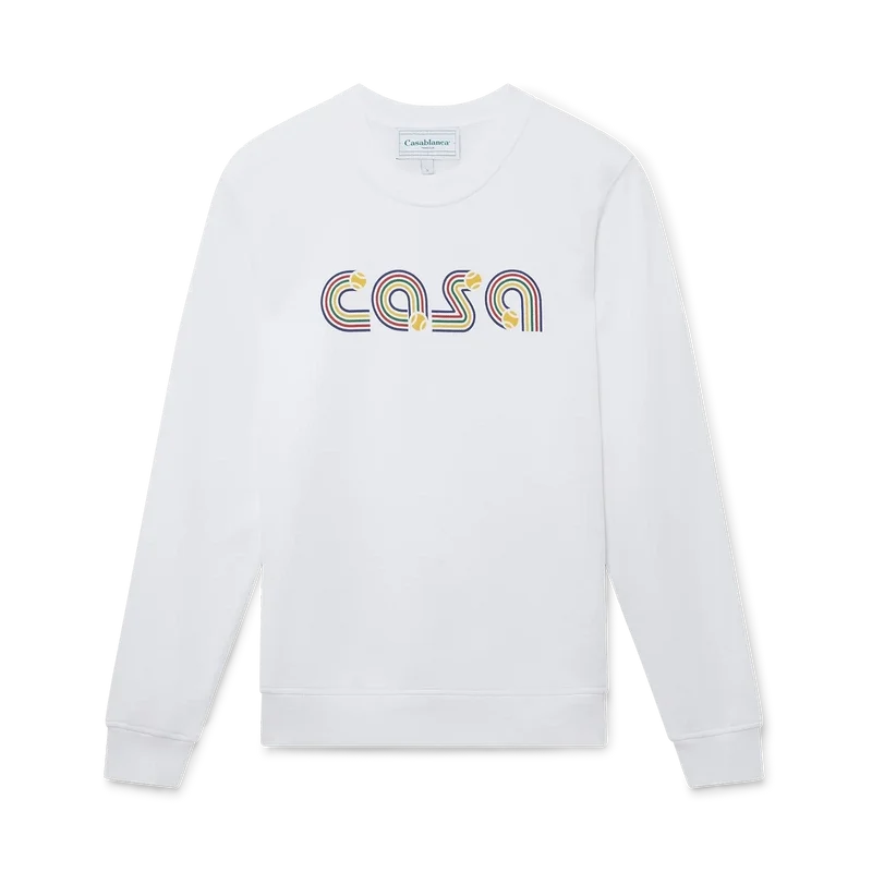 Felpa da donna Casa in cotone biologico serigrafata con la grafica iconica della Maison, reinterpretata per l’esclusiva capsule collection Nordstrom incentrata sull’athleisure moderno ispirato al tennis. Caratterizzata da classico girocollo, maniche lunghe ed etichetta con il marchio Casablanca Paris, progettata per una vestibilità comoda.