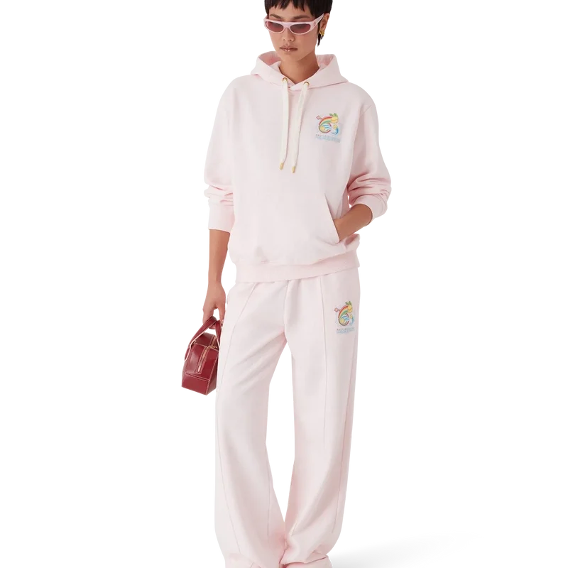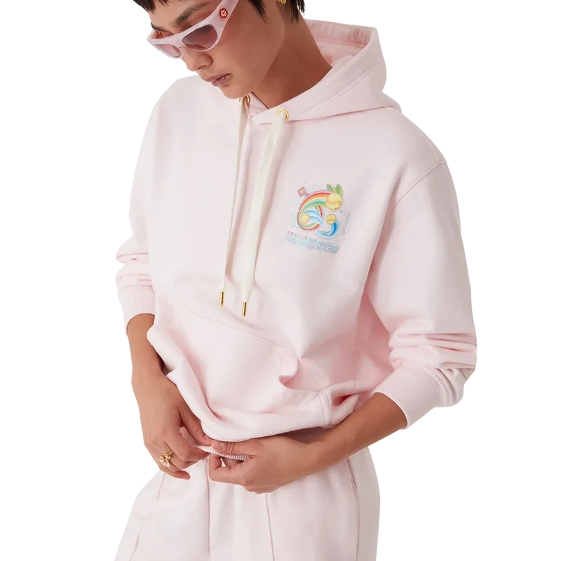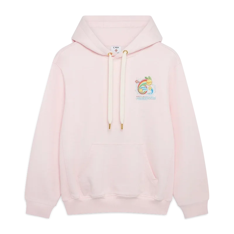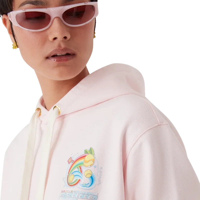 La felpa con cappuccio Manga Tennis Ball è un capo sportivo a maniche lunghe ricamato che presenta le illustrazioni di stagione ispirate al mondo del kawaii e dei manga, giocando con l’iconografia di Casablanca e utilizzando palline da tennis al posto delle arance per un tocco divertente. Completa di cappuccio, chiusura con coulisse, tasca a marsupio e dettagli a costine su polsini e orlo.