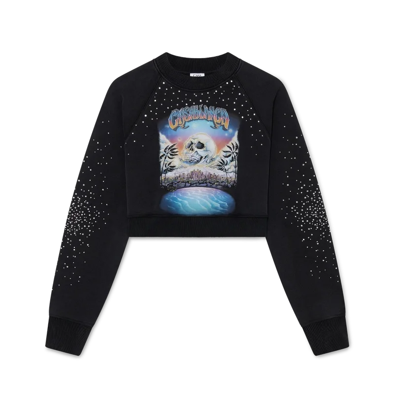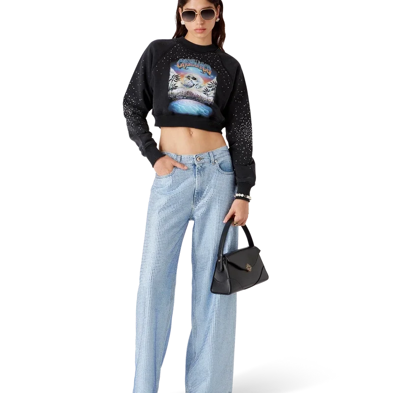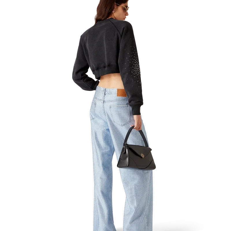 I pantaloncini in denim con decorazioni in cristallo La Pramonition hanno un taglio al ginocchio e una silhouette morbida, sono realizzati in tessuto denim e decorati con perline in vetro applicate su tutta la superficie. Sono dotati di fodera, tasche anteriori e posteriori, chiusura con cerniera e passanti per cintura.<!–