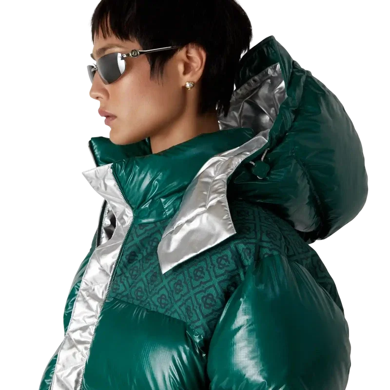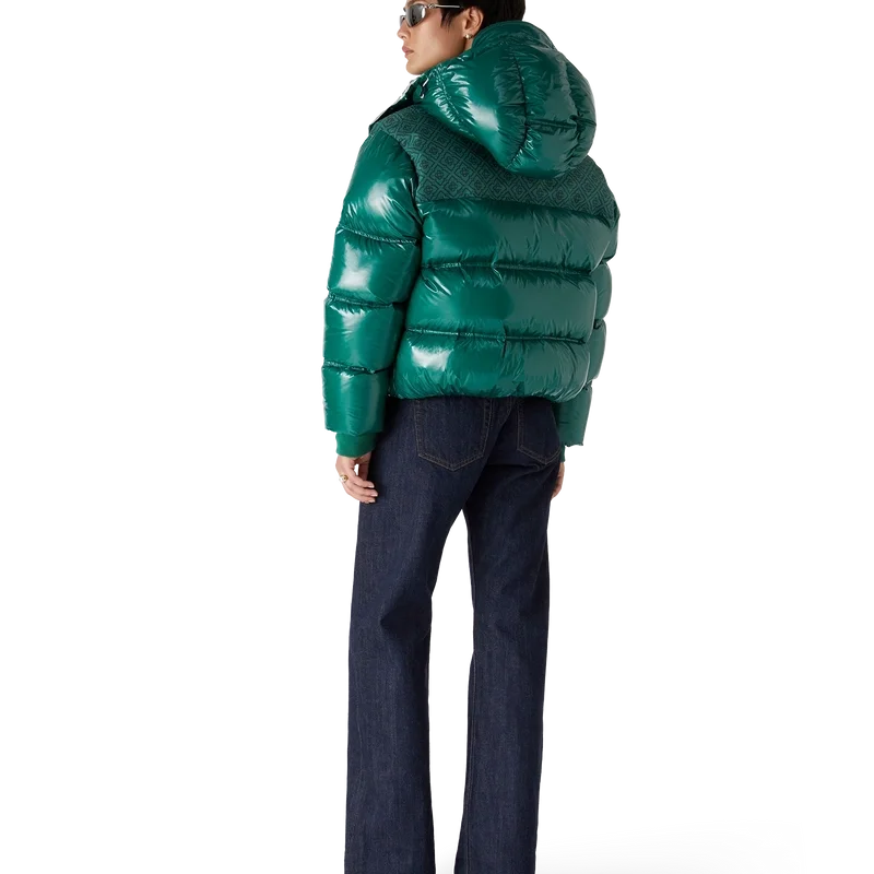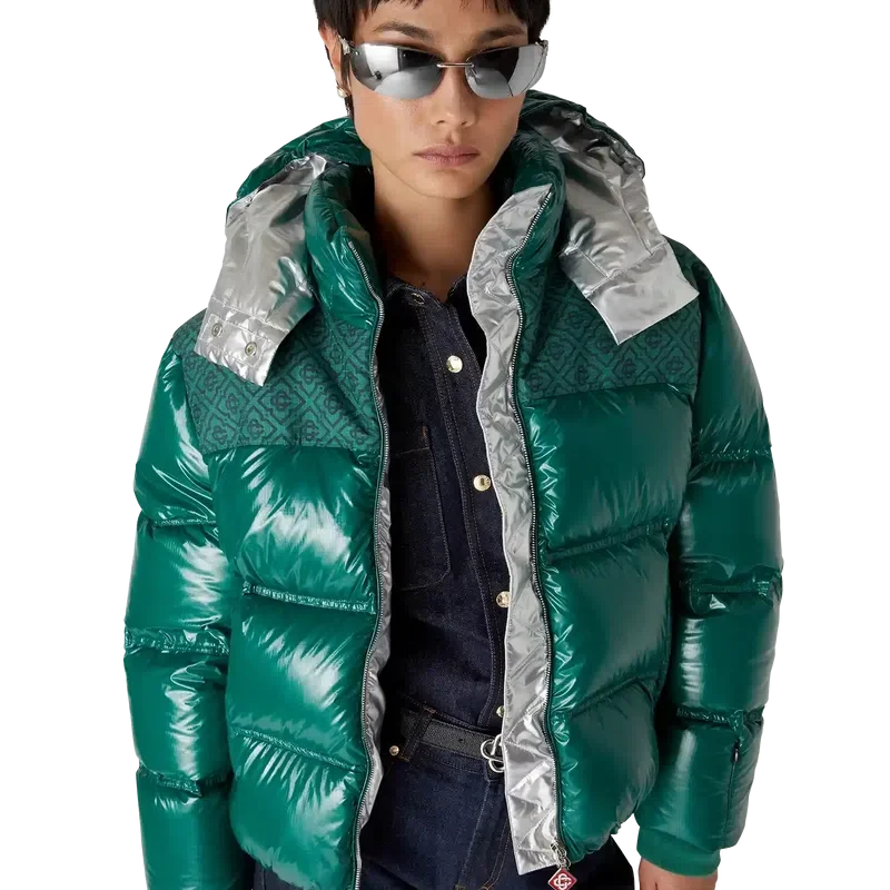 Il piumino imbottito in nylon è un capo di capispalla dal design moderno e squadrato, realizzato in tessuto di nylon ripstop con imbottitura in piuma e pannello jacquard con monogramma a contrasto sulle spalle. Completato da un cappuccio con cordini e fermacordini con logo CC, un collo alto che offre ulteriore calore e protezione dalle intemperie, una chiusura con cerniera con linguetta con il caratteristico logo a rombi della Maison, tasche frontali con chiusura a cerniera, cinturini regolabili con marchio sui polsini e orlo e polsini elasticizzati.