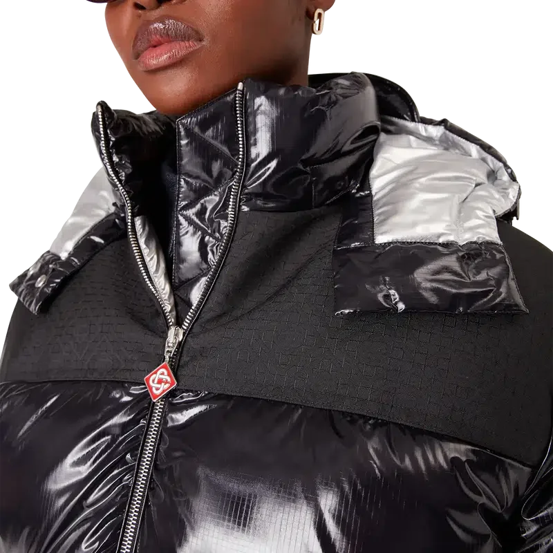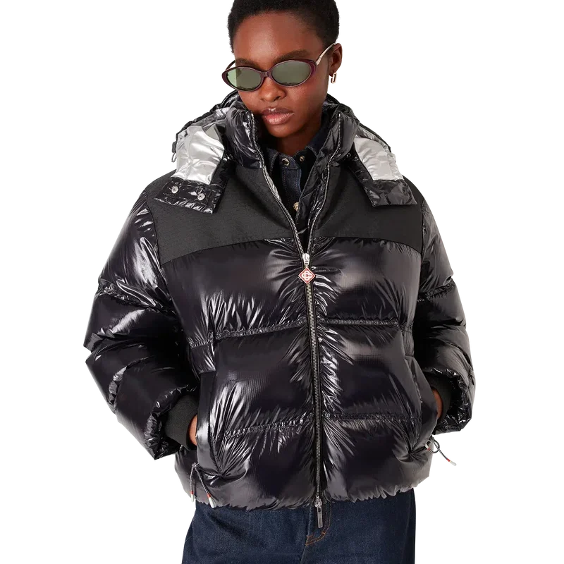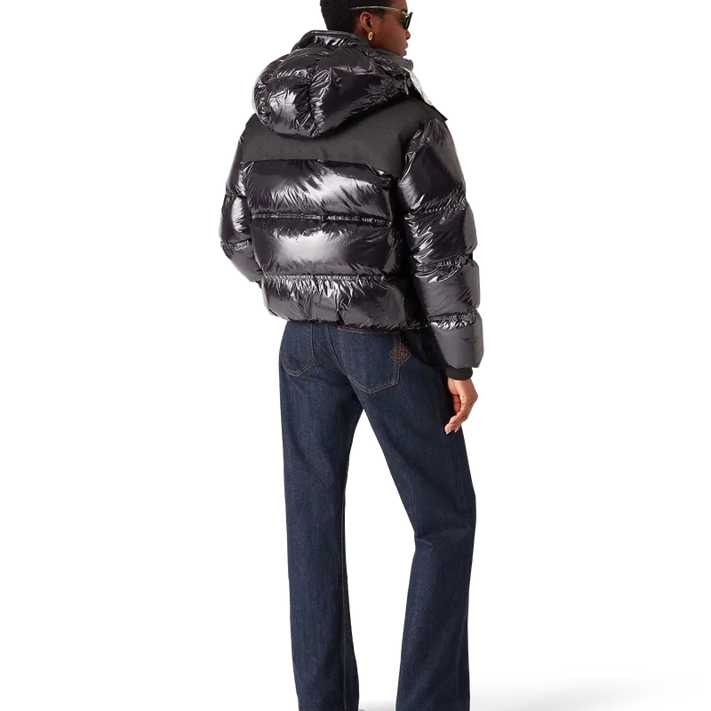 Il piumino in nylon è un capo di capispalla dal design moderno e squadrato, realizzato in tessuto di nylon ripstop con imbottitura in piuma e pannello jacquard con monogramma a contrasto sulle spalle. Completato da un cappuccio con cordini e fermacordini con logo CC, un collo alto che offre ulteriore calore e protezione dalle intemperie, una chiusura con zip con linguetta con il logo a rombi della Maison, tasche frontali con chiusura a zip, cinturini regolabili con marchio sui polsini e orlo e polsini elasticizzati.