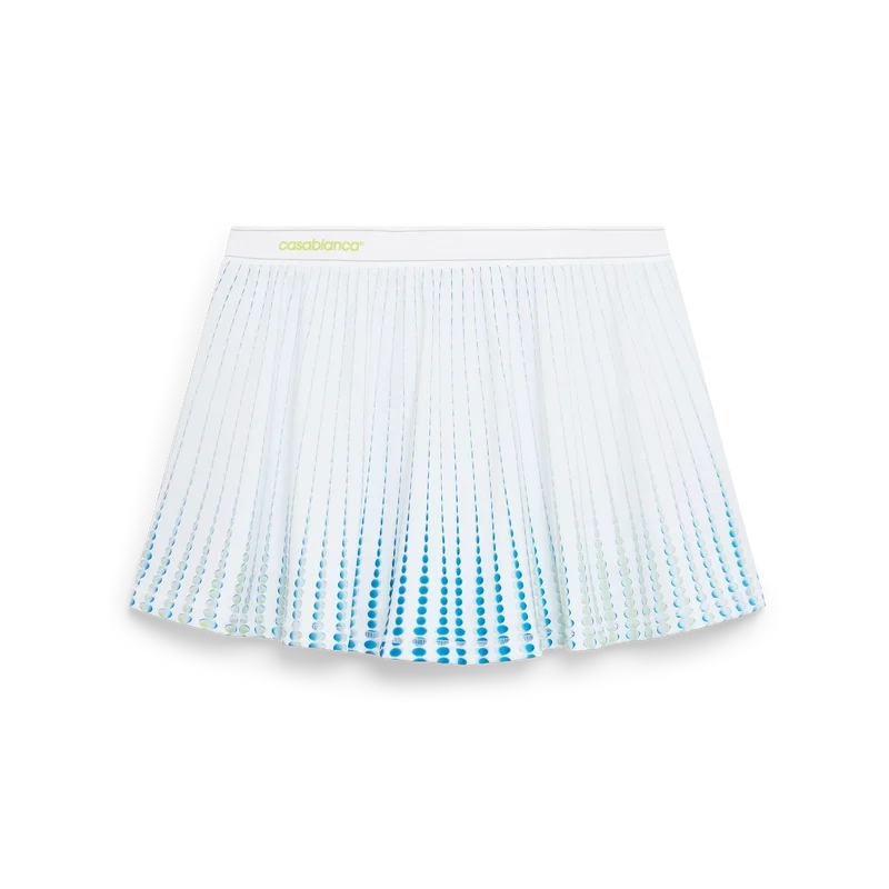 La gonna a tubino con stampa Tennis è una gonna in jacquard con design ad A caratterizzata da una grafica creata in collaborazione con Martin Naumann, noto per il suo lavoro con sfumature ed effetti di texture. Completata da una cintura elasticizzata con il logo Casablanca e dettagli a strisce.