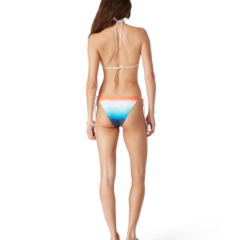 Lo slip del bikini Gradient presenta un motivo stampato realizzato in tessuto tecnico traspirante, caratterizzato da una palette sobria di blu, acquamarina, bianco e arancione in una sfumatura di colori creata appositamente per la collezione. Realizzato in tessuto tecnico, è rifinito con bordi bianchi e chiusura a lacci e presenta il rivetto CC intrecciato, segno distintivo della Maison. Da indossare con il top coordinato.