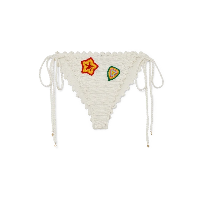 Lo slip bikini con motivi all’uncinetto è realizzato in tessuto all’uncinetto. Rifinito con motivi che richiamano i classici elementi di design della Maison e lacci sui fianchi. Questo capo è pensato per essere indossato con il top bikini coordinato.