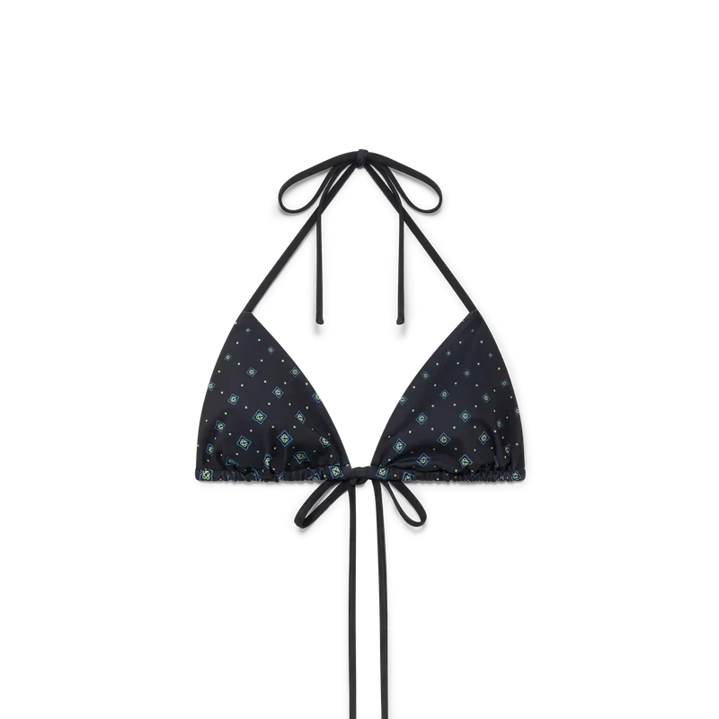 Il top bikini a triangolo con monogramma nero sfumato è un modello raffinato caratterizzato dal motivo Monogram nero della Maison con chiusura a lacci. Completato da lacci con punte dorate, coppe rimovibili e il caratteristico rivetto CC intrecciato placcato oro della Maison sulla coppa sinistra, questo capo è pensato per essere indossato con lo slip abbinato.