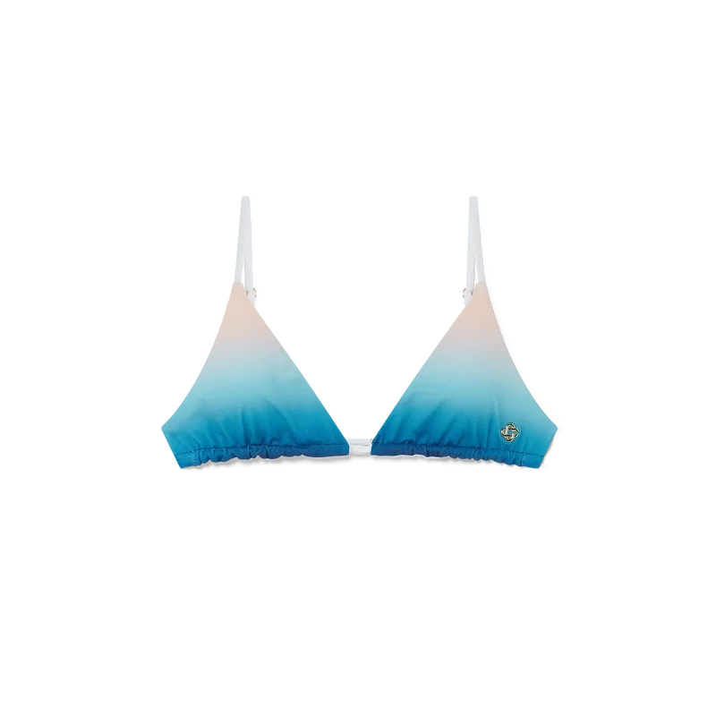 Il top bikini Gradient presenta una stampa realizzata in tessuto misto poliestere traspirante, con i colori sfumati di questa stagione. Rifinito con lacci bianchi a contrasto, questo capo è pensato per essere indossato con lo slip abbinato.