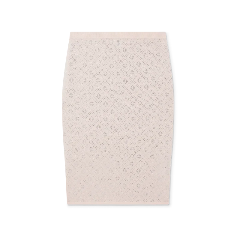La gonna in maglia con monogramma in cristallo è un modello di media lunghezza realizzato in tessuto di lana merino e impreziosito dal monogramma in cristallo della Maison. Rifinita con elastico in vita.
