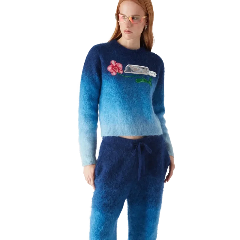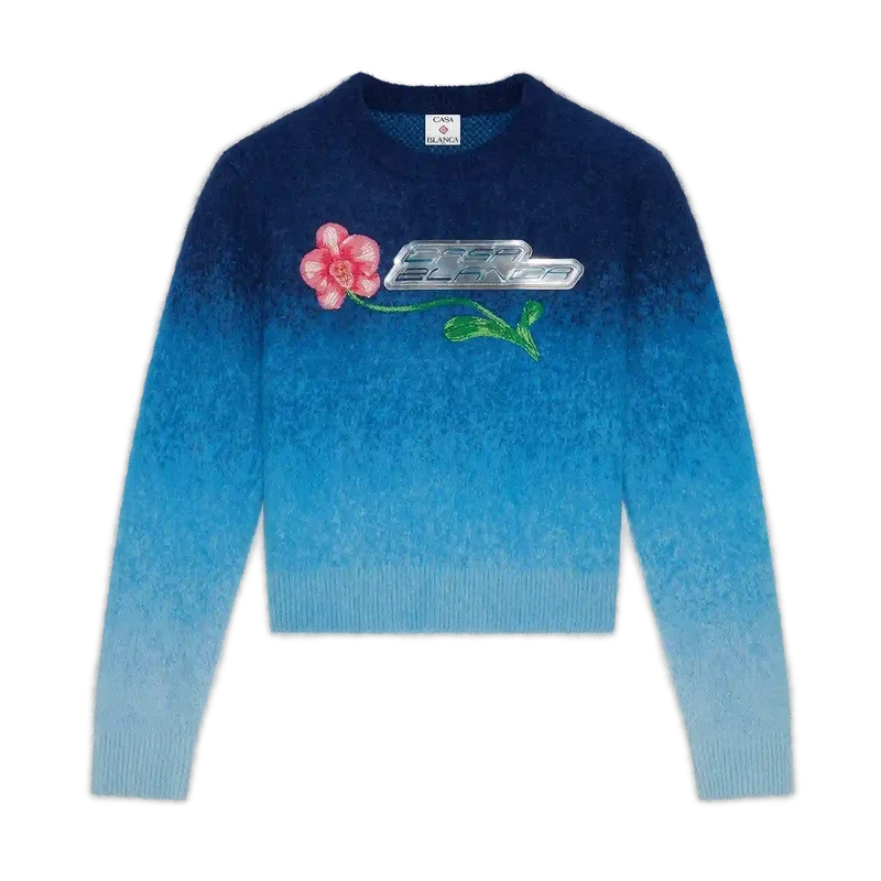 La felpa Gradient Orchid è un raffinato modello a maniche lunghe che presenta il caratteristico logo Orchid della Maison con il marchio Casablanca. Rifinita con collo, polsini e orlo a costine. Il design è completato da un orlo corto per un look disinvolto e moderno.
