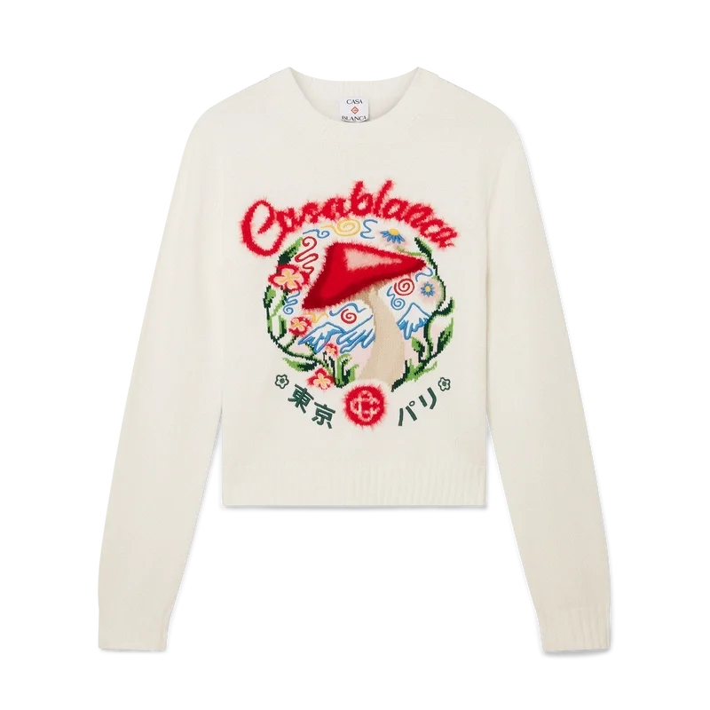 Il maglione in cotone ricamato con fungo è un modello a maniche lunghe che presenta uno degli elementi di design distintivi della Maison – il fungo – realizzato in tessuto di cotone. Completato da un classico girocollo, polsini e orlo a costine.