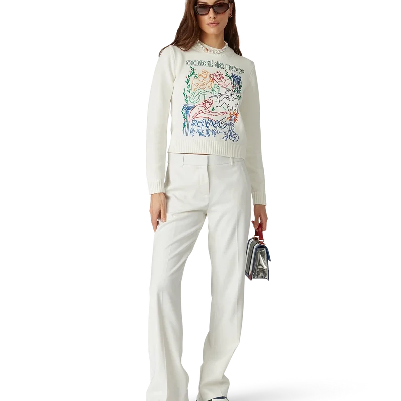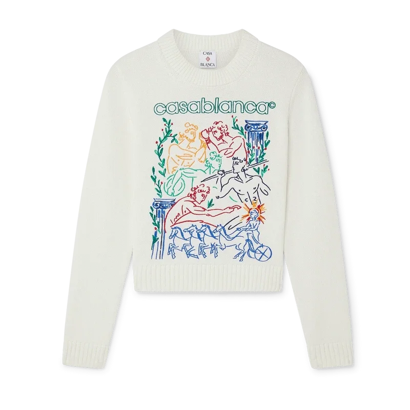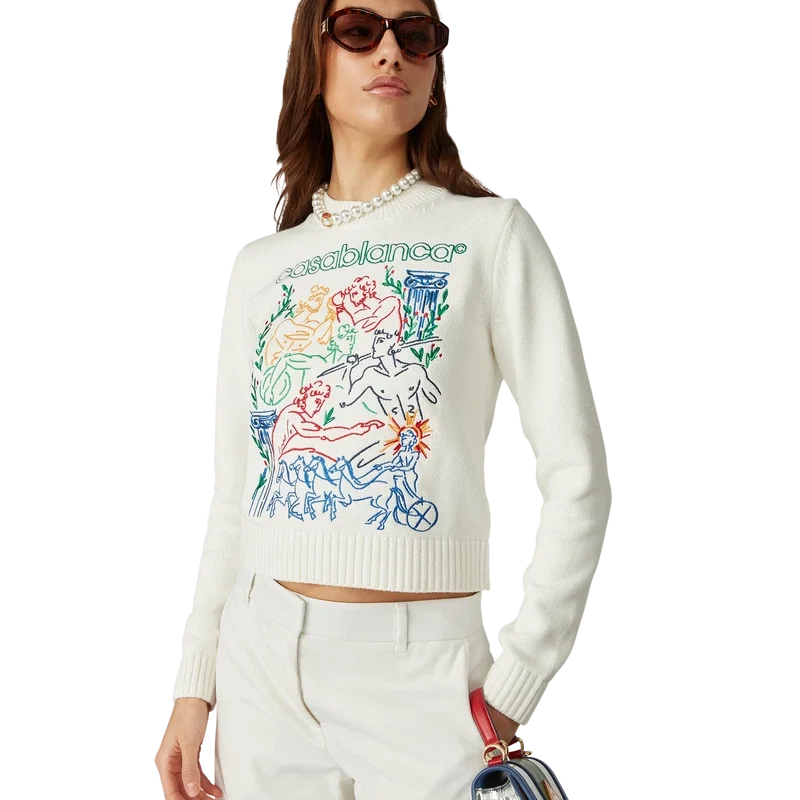Il maglione ricamato è un modello a maniche lunghe realizzato in tessuto di cotone a maglia con il motivo ricamato stagionale della Maison. Rifinito con classico girocollo e polsini, collo e orlo a costine.
