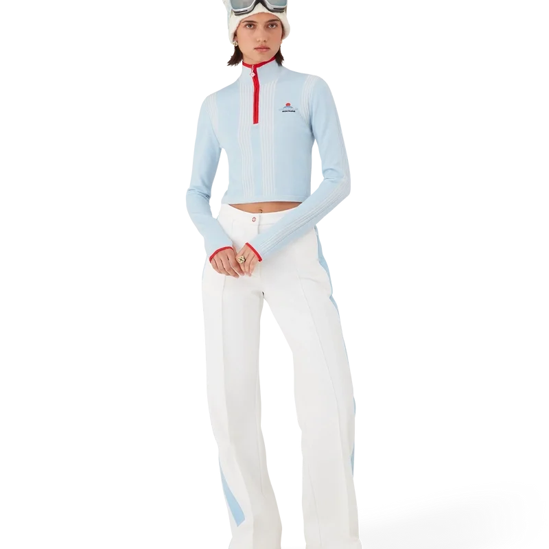 Il top corto Ski Merino Base Layer è un raffinato modello Apras-Sport realizzato in tessuto di lana merino blu, ispirato al crepuscolo che cala sulle campagne montuose del Giappone. Traendo ispirazione dalla serena bellezza della luce serale che proietta ombre blu sulle valli innevate, il design fonde l’eleganza sportiva e casual.