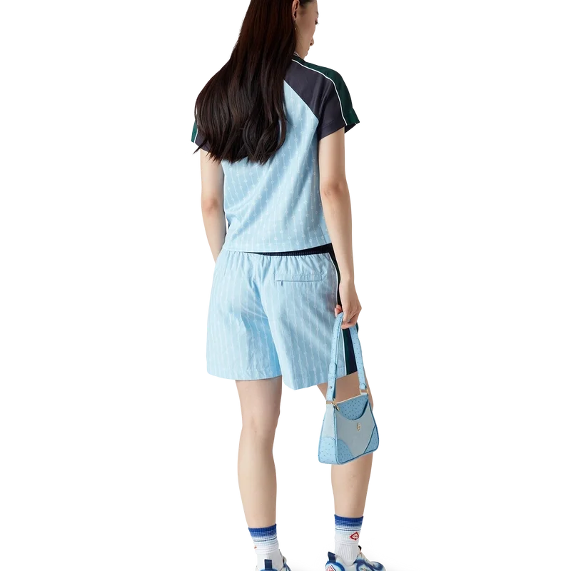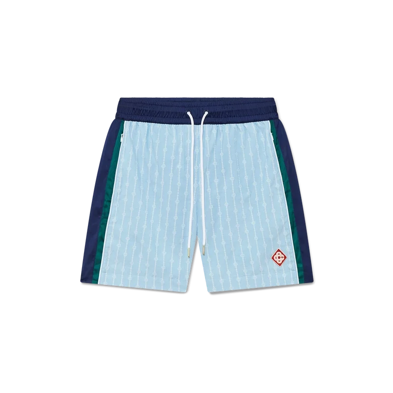 I pantaloncini da tuta gessati sono un capo sportivo realizzato in tessuto di cotone con il logo CC intrecciato della Maison. Completati dal caratteristico logo a diamante, da una cintura elasticizzata, da un cordoncino con puntali dorati, da tasche laterali a filetto con chiusura a zip, da dettagli a righe sui lati e da una tasca posteriore a filetto con chiusura a zip.