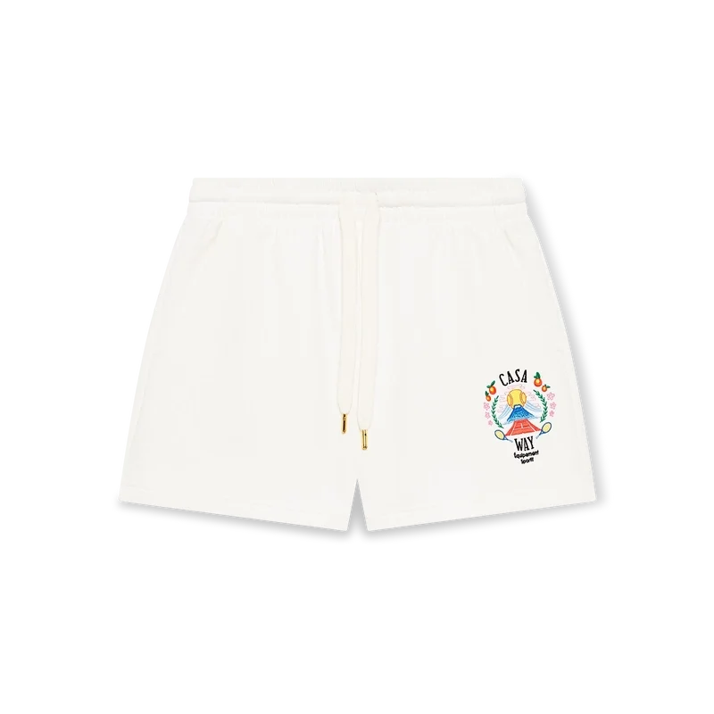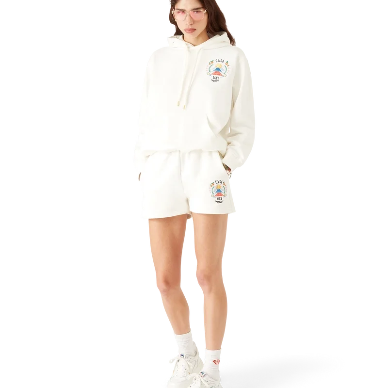 I pantaloncini da ginnastica Casa Way Mountain sono un capo di abbigliamento sportivo realizzato in tessuto di cotone biologico con la grafica stagionale del marchio reinterpretata per questa stagione. Sono rifiniti con una cintura elasticizzata con coulisse con puntali dorati, tasche interne e una tasca applicata sul retro.