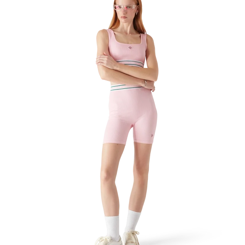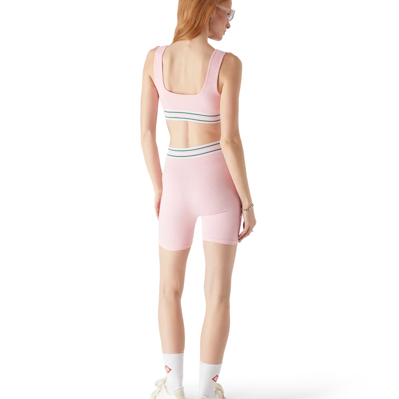 I pantaloncini con marchio Casablanca presentano un design essenziale ispirato all’abbigliamento sportivo, caratterizzato dalla toppa con il logo a rombi iconico della Maison. Realizzati in tessuto elasticizzato senza cuciture, offrono una silhouette raffinata con una struttura minimalista. Completati da un taglio che valorizza la figura, una cintura elasticizzata con il logo Casablanca della Maison e dettagli a strisce.