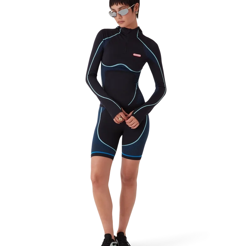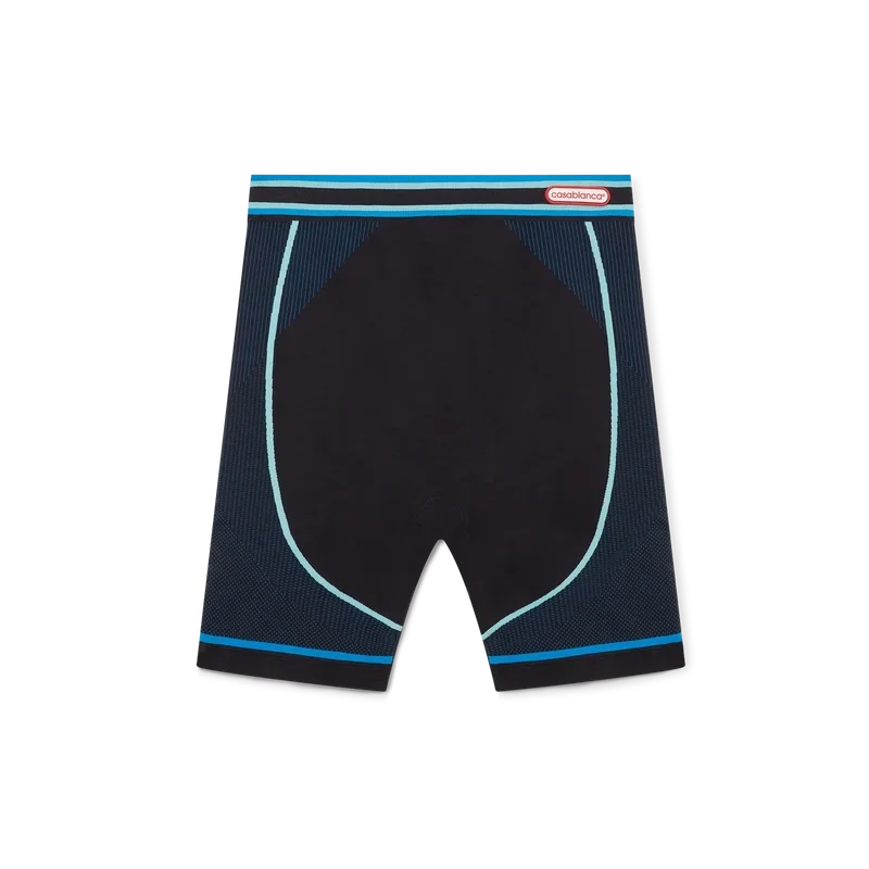 I pantaloncini senza cuciture presentano un design ispirato all’abbigliamento sportivo e sono realizzati in tessuto elasticizzato a costine. Sono rifiniti con una cintura elasticizzata che presenta il logo Casablanca, il caratteristico logo CC intrecciato della Maison e dettagli a pannelli.
