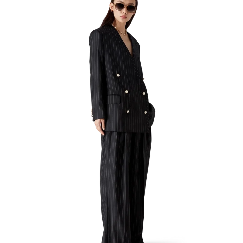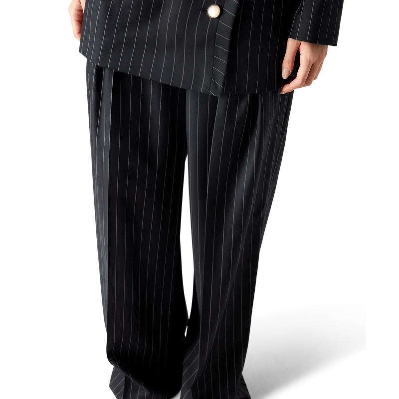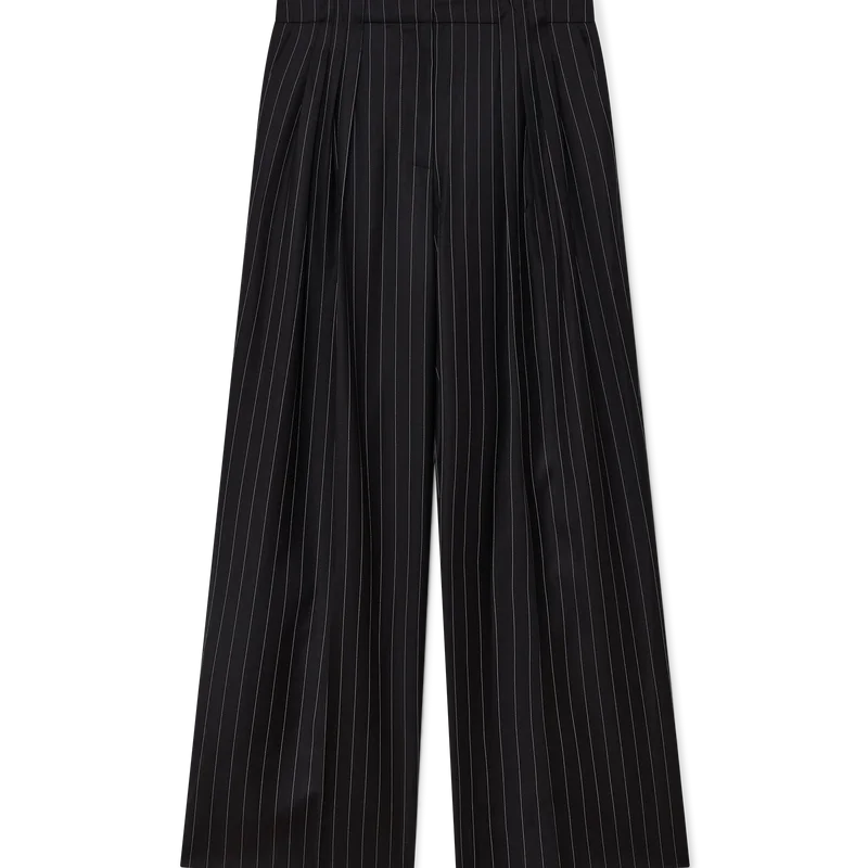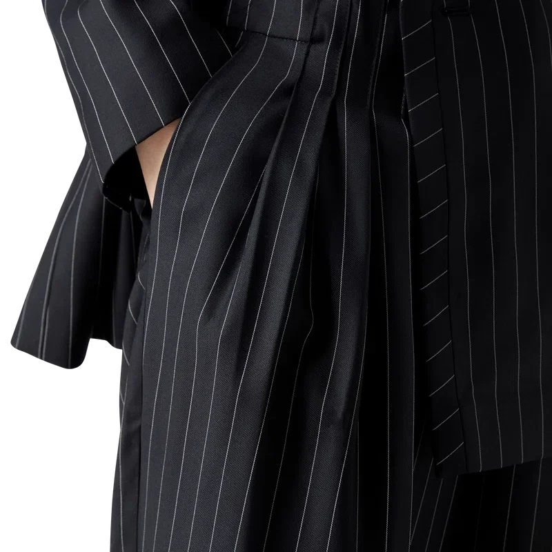 I pantaloni sartoriali in lana gessata a tripla piega hanno un taglio dritto e sono realizzati in tessuto di lana. Sono rifiniti con cintura, passanti, tre pieghe, tasche anteriori oblique e tasche posteriori a filetto con chiusura a bottone CC a gambo piatto.