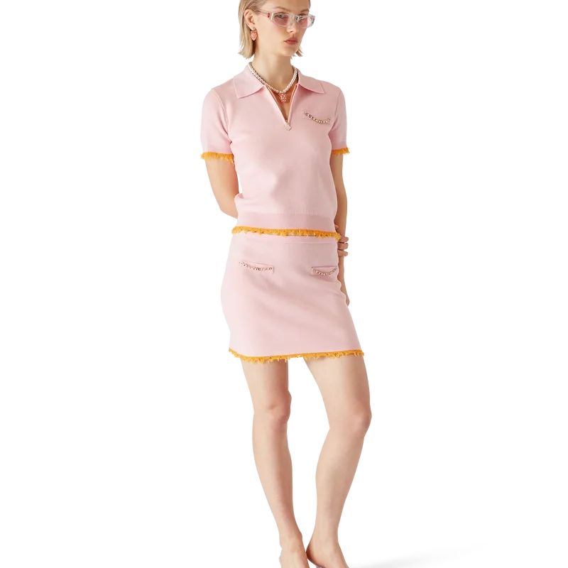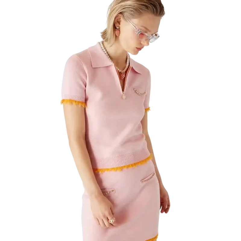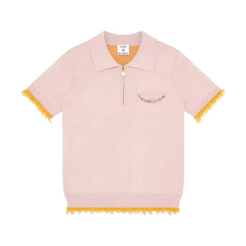 La polo è un modello a maniche corte realizzato in tessuto di lana merino, caratterizzato da una silhouette classica con tasche. Completata da colletto a costine, chiusura con zip con linguetta con il logo a diamante della Maison, tasca sul petto a filetto, polsini e orlo a costine con bordi sfrangiati, e una vestibilità comoda con una costruzione raffinata.