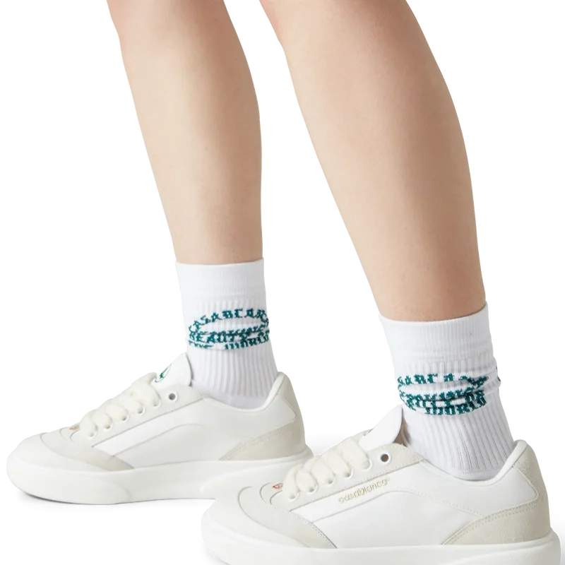 La sneaker da donna Del Mar White prende il nome dal famoso skatepark californiano degli anni ’80. Le sneakers Del Mar si ispirano alle classiche scarpe da skate della fine degli anni ’70 e dei primi anni ’80. Presentano molti degli elementi distintivi delle prime scarpe da skate, con tomaia a pannelli in tela, puntale in gomma, suola piatta e lacci spessi, occhielli a contrasto e logo discreto.