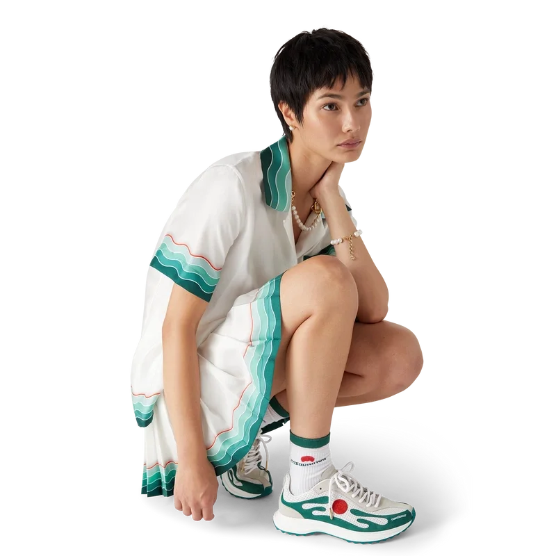 La sneaker da donna Stade bianca e verde prende il nome dall’antica misura greca della distanza di una corsa podistica, che in seguito è diventata la parola “stadio”. Lo stile si ispira alle scarpe da corsa ad alte prestazioni ed è un trasferimento della tecnologia moderna da un’antica tradizione; i codici della corsa moderna, con la rete leggera e la stampa luminosa, aggiungono un tocco di modernità. La suola presenta curve scolpite, che richiamano la nostra scarpa Atlantis e il design stabile di Casablanca.