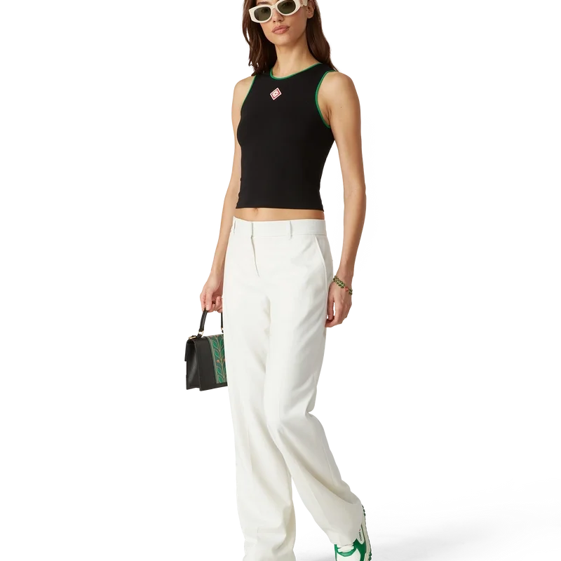La canotta con logo a diamante è un modello corto senza maniche realizzato in tessuto di cotone. Completata dal caratteristico logo a diamante della casa, dai dettagli con bordi verdi e da un classico girocollo. Progettata per arrivare sopra l’ombelico.
