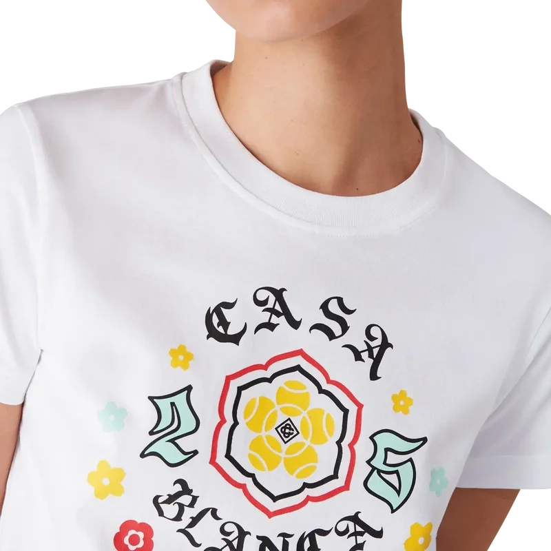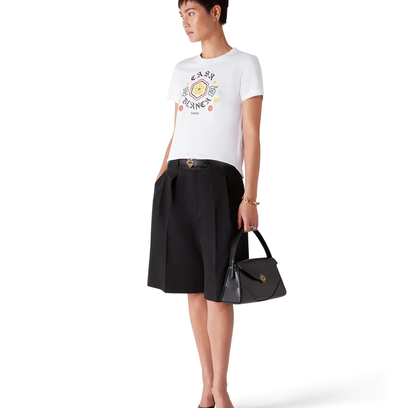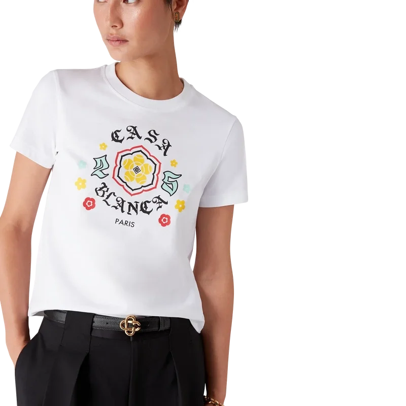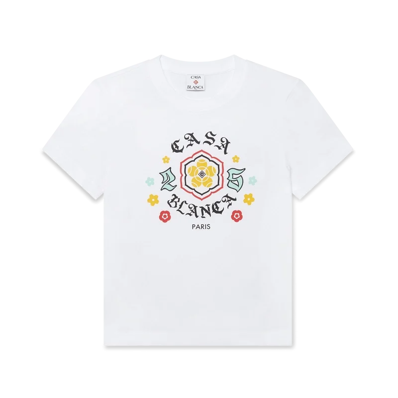 La T-shirt aderente con emblema è un modello a maniche corte che presenta la grafica di questa stagione, per la quale abbiamo tratto ispirazione dalla sottocultura giapponese dei BōSōZoku come uno dei nostri temi principali. Il contrasto tra gli elementi grafici e il testo ci ha ricordato molto Casablanca. Abbiamo creato la nostra interpretazione della grafica BōSōZoku, incorporando frasi che descrivono il marchio, come “Guardando la bellezza del mondo”. Il layout è non convenzionale, ma la composizione è accuratamente bilanciata, conferendole un aspetto unico ma armonioso. Completata da un classico girocollo.