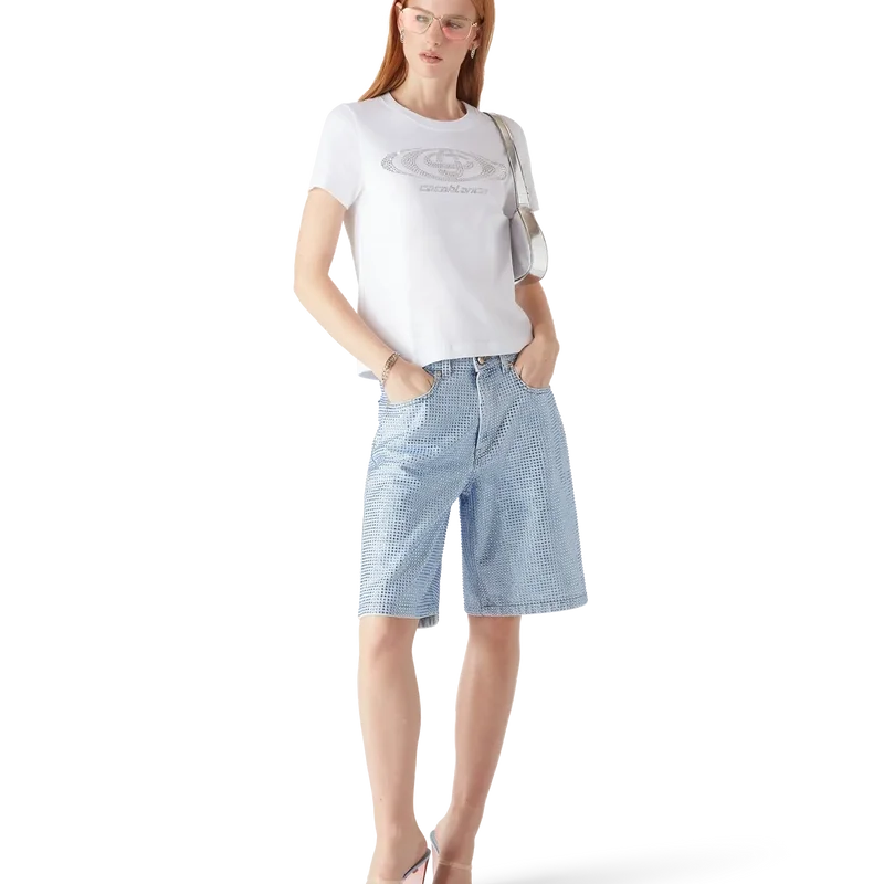 T-shirt aderente a maniche corte con logo Crystal Warped in pantaloncini
