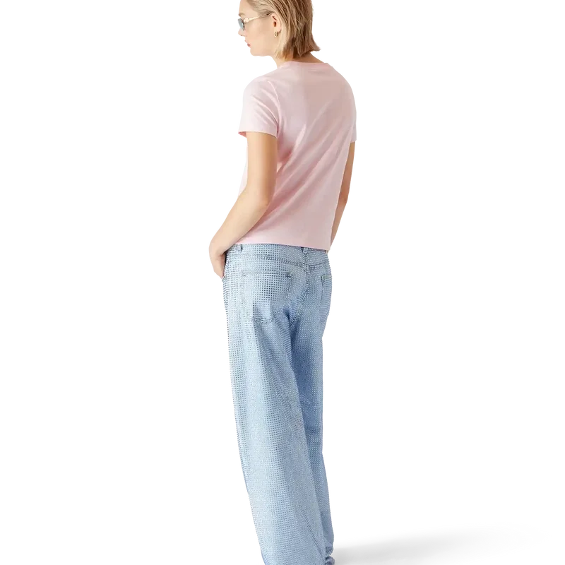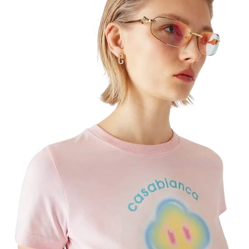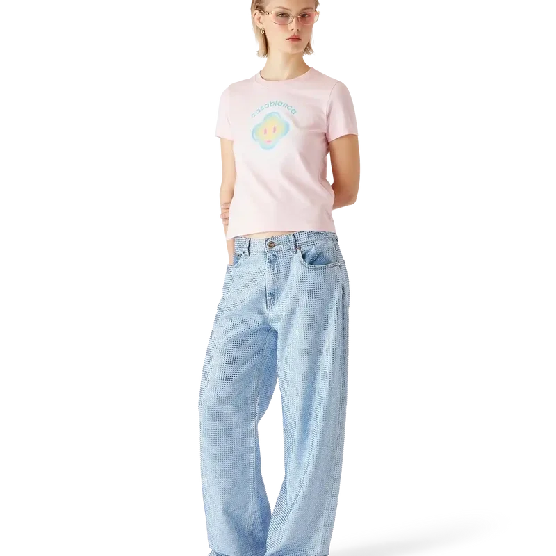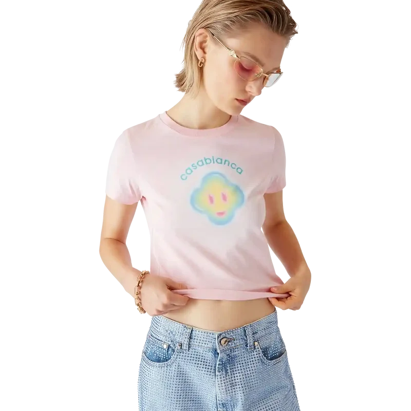 La T-shirt aderente a pantaloncini con smiley aerografato si ispira all’evoluzione della faccina sorridente nella scena house. Basandosi su precedenti sperimentazioni con la tecnica dell’aerografia, il design trae ispirazione dalla sua presenza iconica su volantini e copertine dei primi album di musica house. Completata da un classico girocollo a costine.
