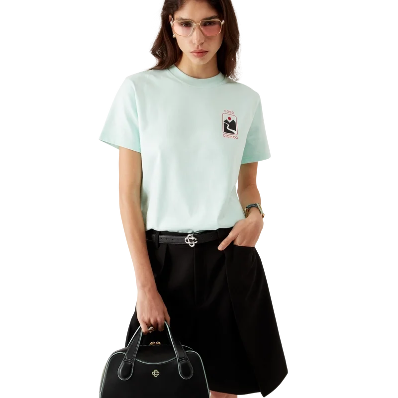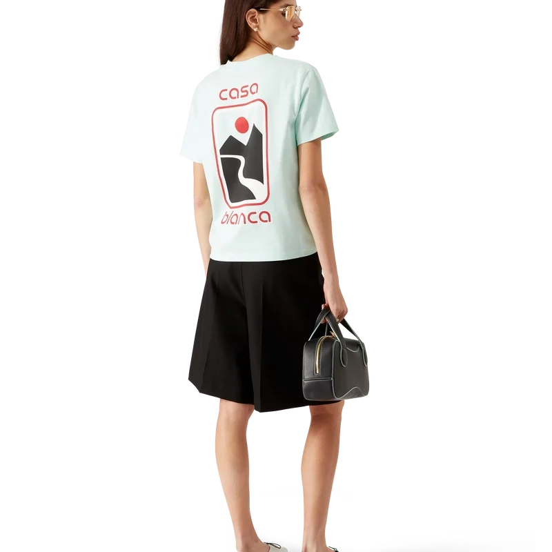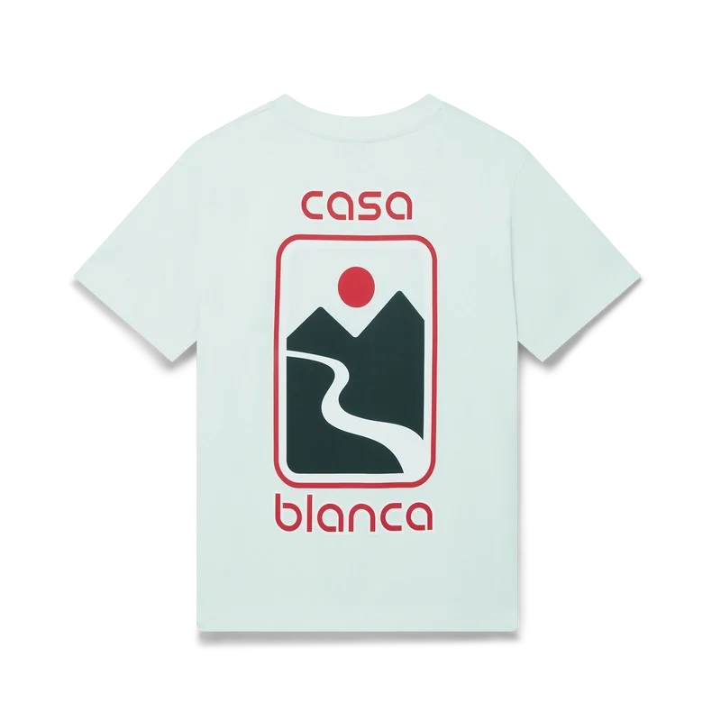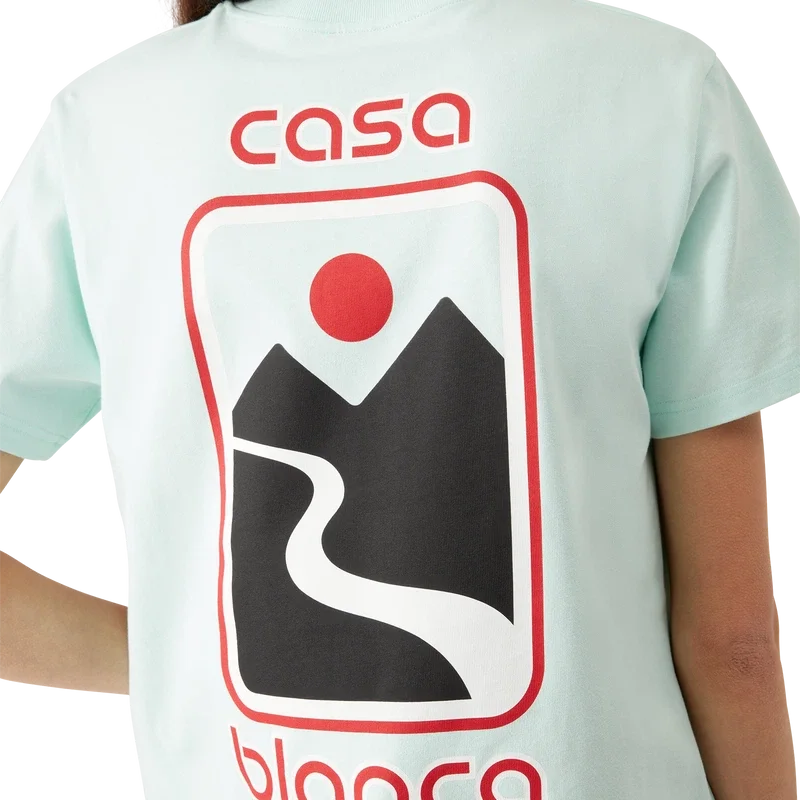 La T-shirt Sunset Valley è un modello a maniche corte con stampa che riprende motivi ispirati al Giappone, realizzata in cotone biologico. Caratterizzata da un classico girocollo e dal logo Casablanca sovrapposto del marchio, è pensata per una vestibilità comoda.