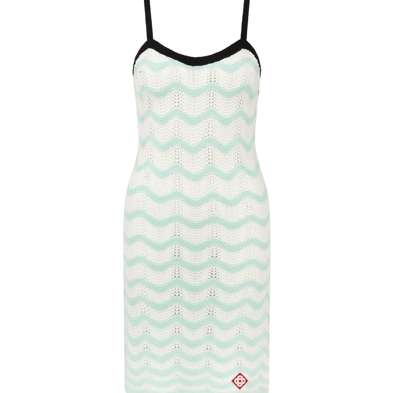 Il miniabito all’uncinetto Wave è un modello senza maniche caratterizzato dal logo a diamante iconico della Maison, realizzato in tessuto di cotone all’uncinetto. Completato da una scollatura sulla schiena, un orlo ispirato alle onde di Memphis, rifiniture a contrasto in nero e spalline sottili che si allacciano sul retro.