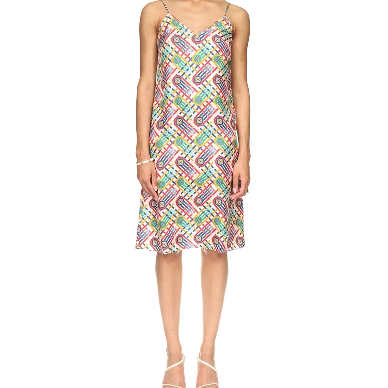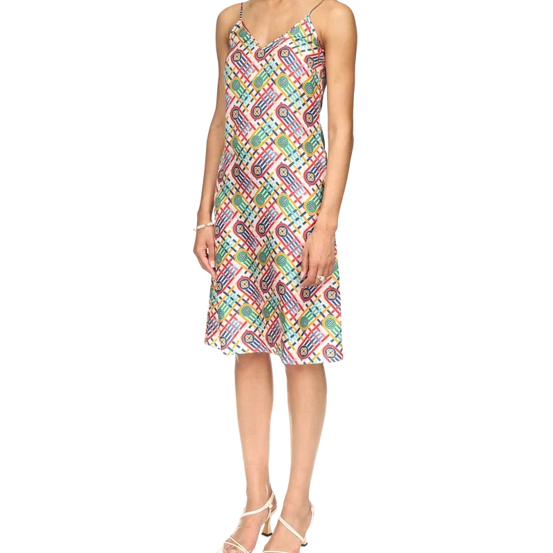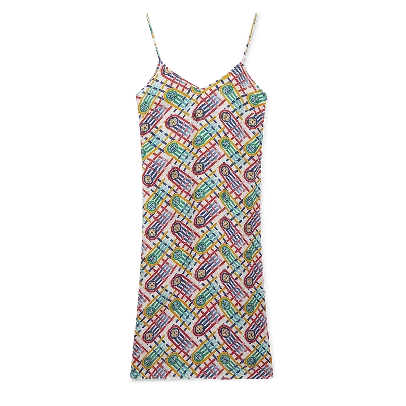 Vestito sottoveste in seta con stampa Monogram Tennis