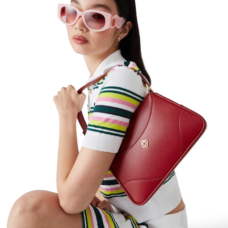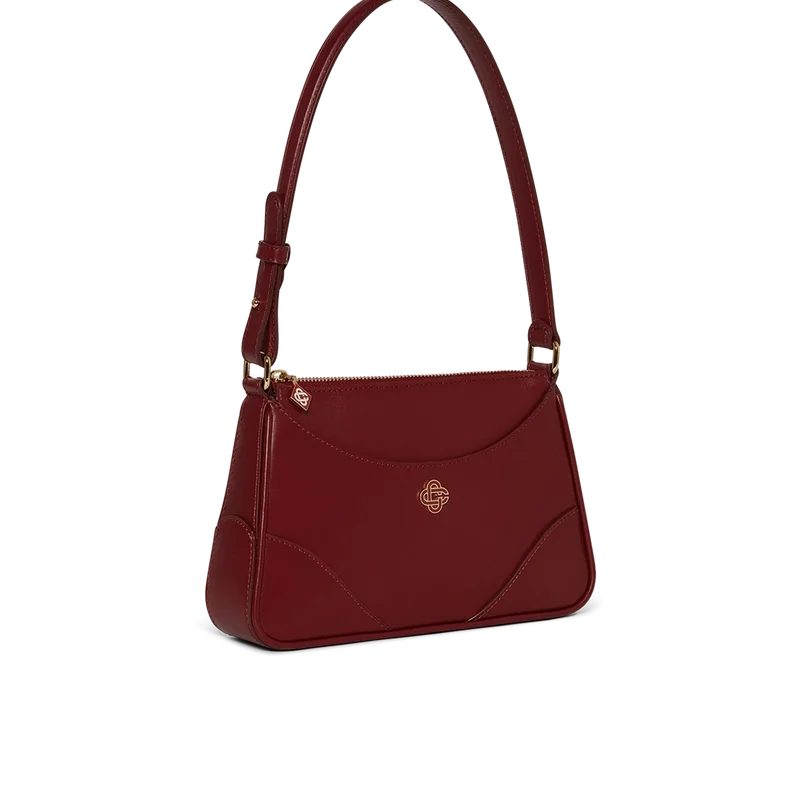 La borsa a tracolla Red Jeanne Pochette è realizzata in pelle di vitello italiana, impreziosita dal logo CC intrecciato della Maison su dettagli in metallo placcato oro di alta qualità. Dotata di chiusura superiore con cerniera con il Diamond Monogram rosso della Maison, tracolla, due scomparti principali, fodera in tela e tasca interna a bustina.
