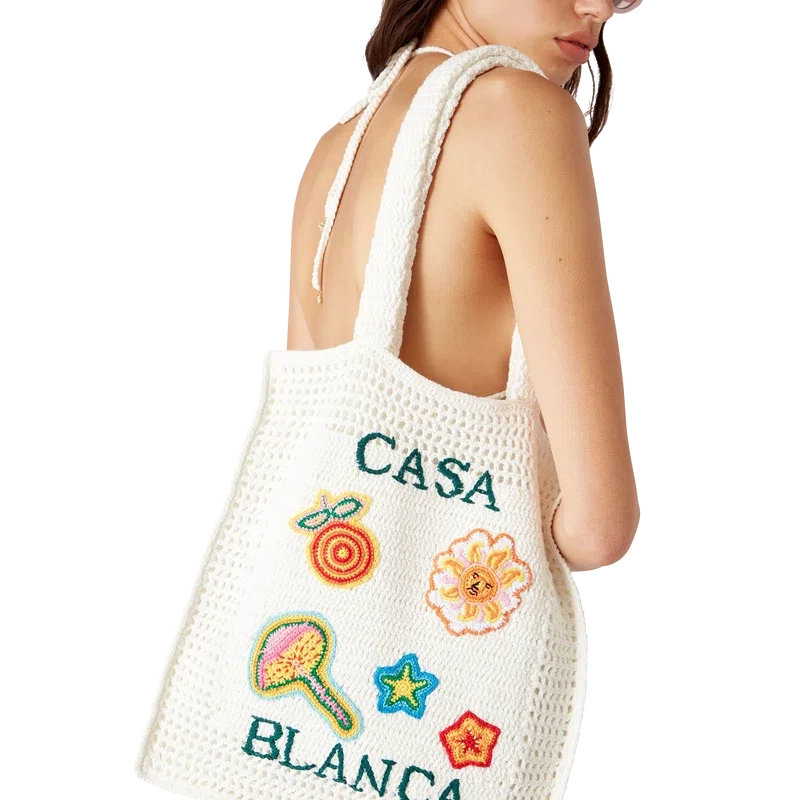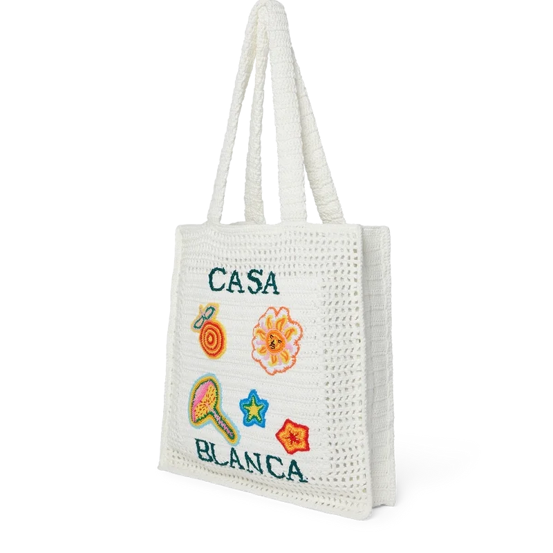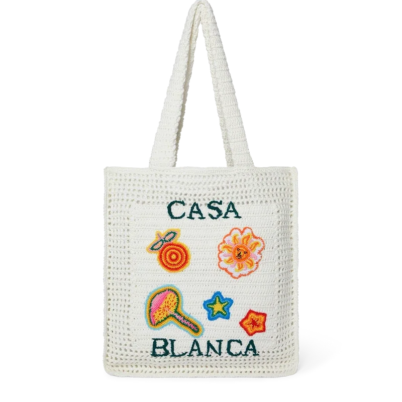 La borsa all’uncinetto Motif è un modello lavorato a maglia realizzato in tessuto di cotone all’uncinetto e caratterizzato da una silhouette morbida. Rifinita con un logo ricamato sovrapposto, elementi di design classici e manici che consentono di indossare questa borsa in stile tote a tracolla o a mano.