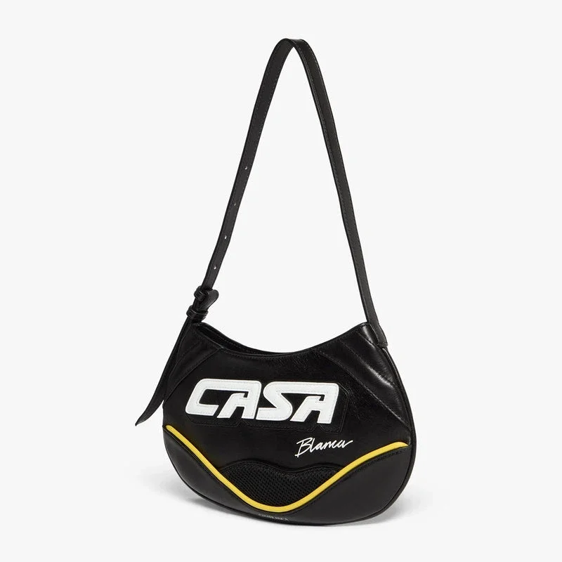 La borsa da motociclista slim nera è realizzata in pelle, con l’iscrizione “Casa” del marchio sul davanti. Completa di tracolla, chiusura con cerniera, dettagli con bordino a contrasto, finiture placcate argento e una silhouette elegante progettata per un uso quotidiano senza sforzo. Fornita con una confezione regalo, una custodia con marchio e un libretto con i dettagli del prodotto.