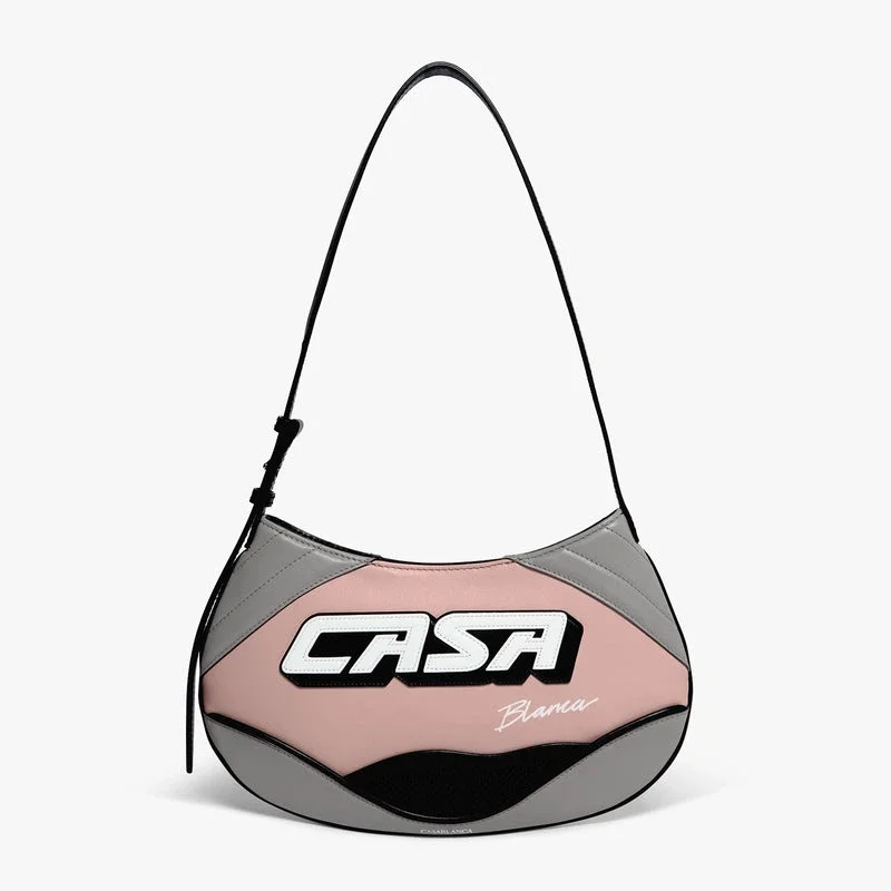 La borsa da motociclista rosa slim è realizzata in pelle e presenta l’iscrizione “Casa” del marchio sul davanti. È dotata di tracolla, chiusura con cerniera, bordino a contrasto, finiture placcate argento e una silhouette elegante pensata per un uso quotidiano senza sforzo. Fornita con cofanetto regalo, sacchetto antipolvere con marchio e libretto con i dettagli del prodotto.