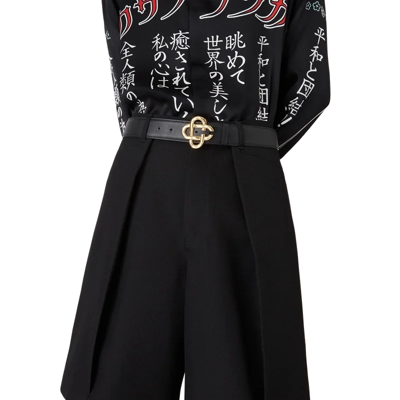 La cintura da uomo con fibbia CC in nero presenta un cinturino realizzato in pelle di vitello italiana. Completata dalla fibbia CC intrecciata, segno distintivo della Maison, realizzata in ottone placcato oro.
