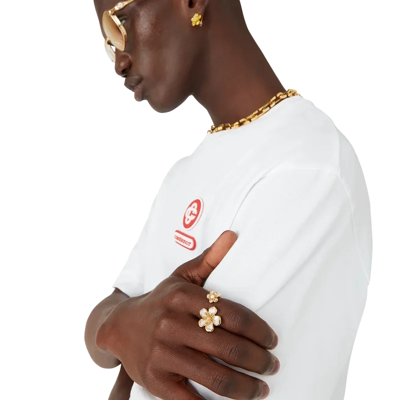 L’anello Flower è progettato nello stile di due fiori di dimensioni diverse ed è realizzato in ottone placcato oro e smalto. Questo articolo viene fornito con una custodia in tessuto Casablanca, una confezione e un libretto informativo sul prodotto.