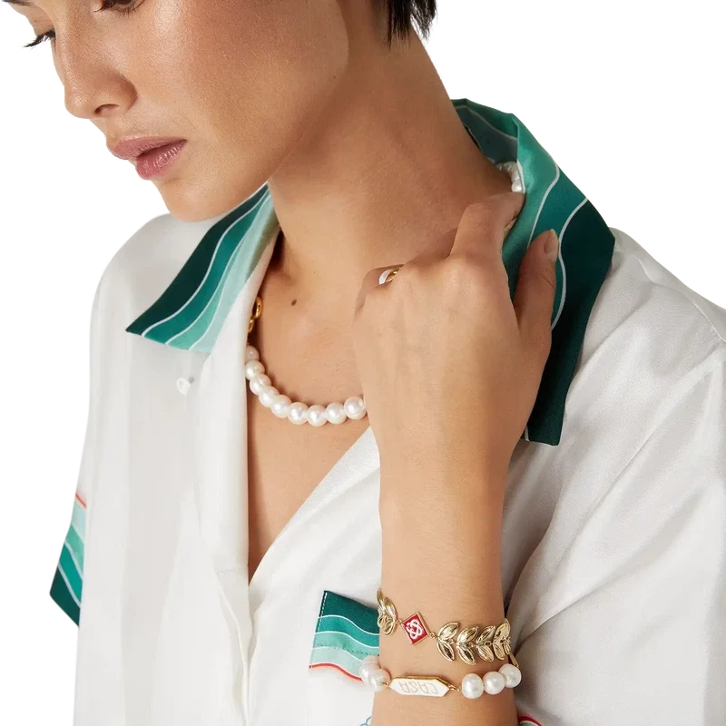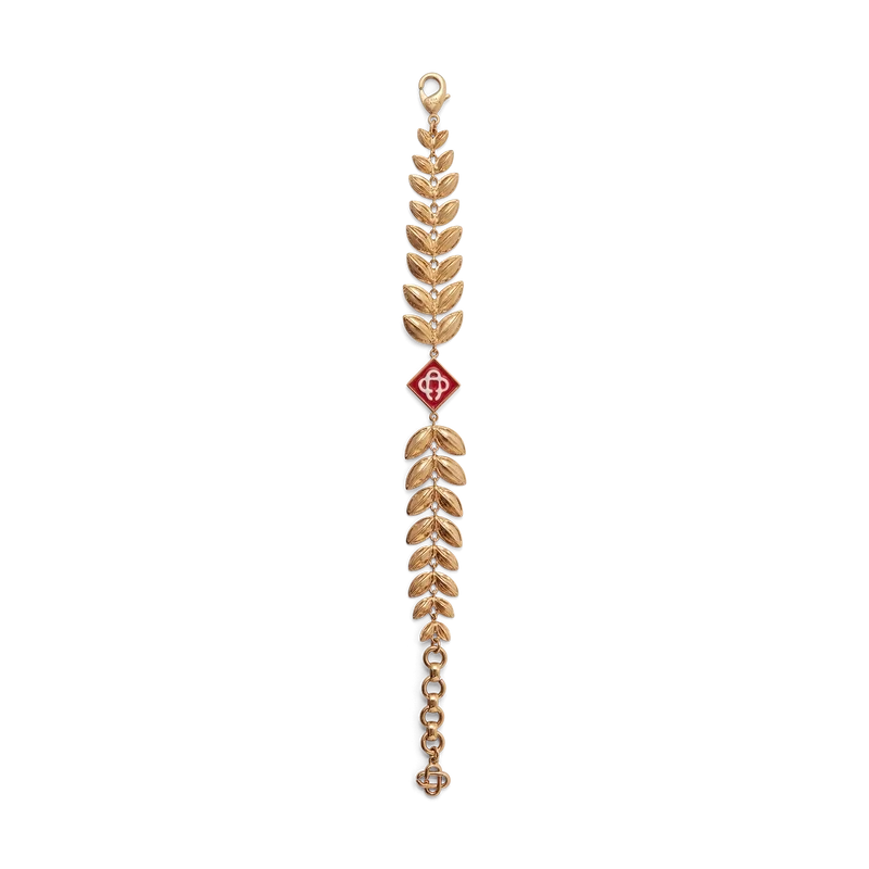 Il bracciale con foglia d’alloro in oro presenta il caratteristico motivo a foglia d’alloro della Maison e il logo a diamante realizzati in ottone e smalto dipinto a mano. Completato da una catena placcata in oro e da una chiusura a moschettone, questo gioiello viene fornito con una confezione regalo, una custodia con marchio e un libretto con i dettagli del prodotto.
