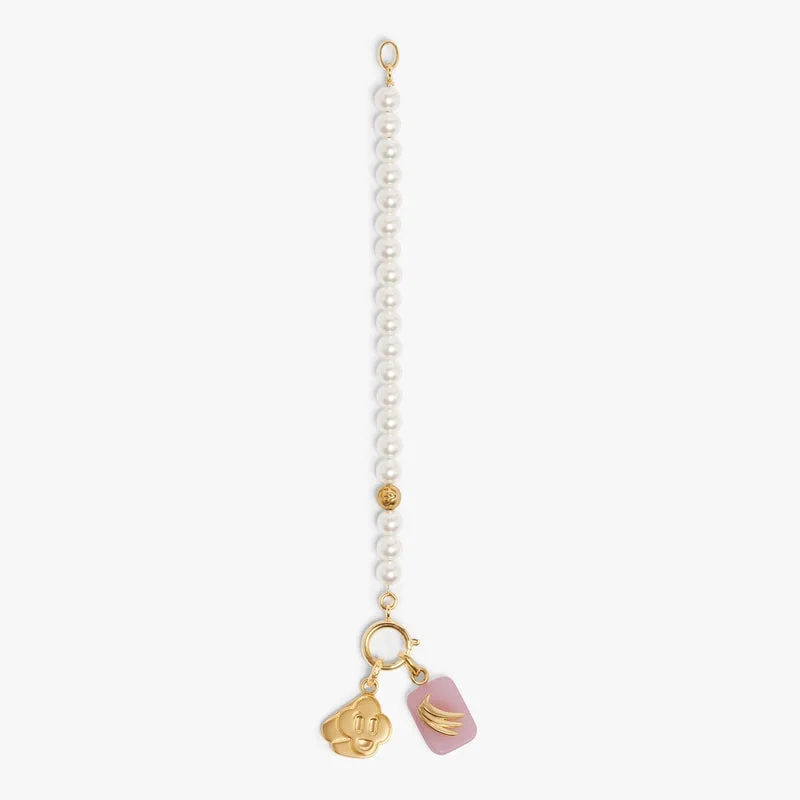 Il bracciale Icon Pearl bianco e oro è un elegante modello realizzato con lucenti perle d’acqua dolce e ottone placcato oro, caratterizzato dal design iconico della Maison impreziosito da dettagli in quarzo. Completato da una chiusura a gancio placcata oro. Fornito con una confezione regalo, una custodia con marchio e un libretto con i dettagli del prodotto.