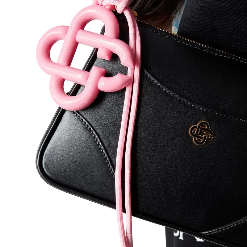 Il ciondolo con logo CC è un Accessorio che riproduce il logo CC intrecciato della Maison, realizzato in tessuto siliconico. Completo di cordino rosa abbinato per un facile aggancio.