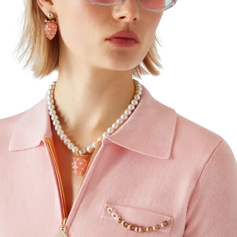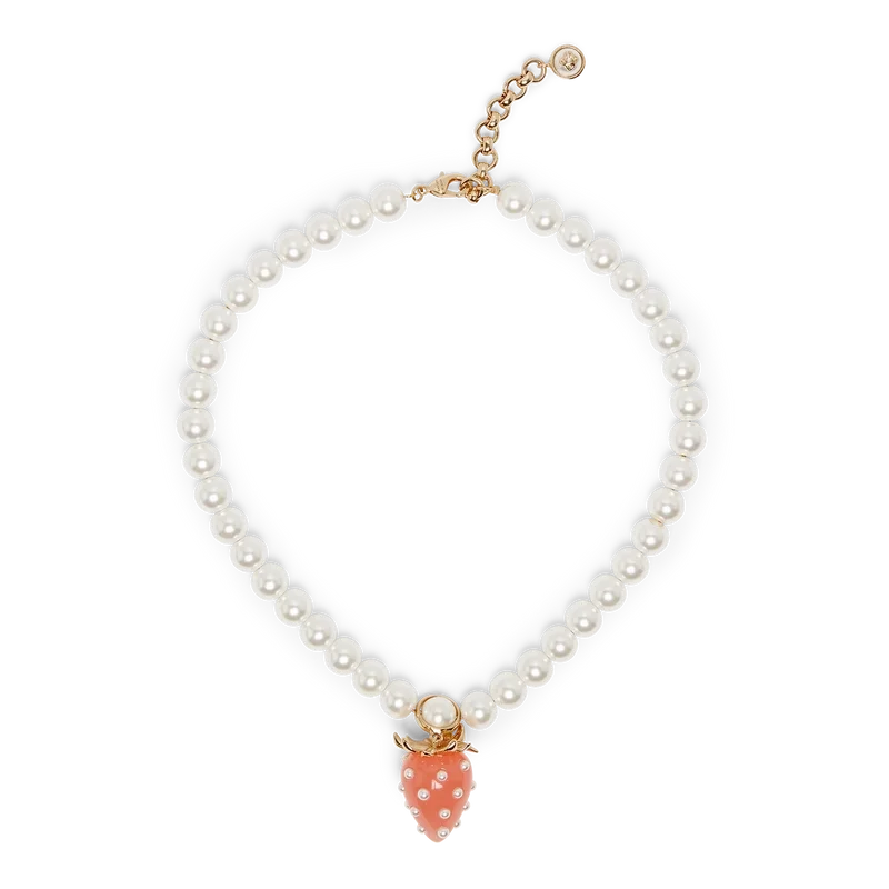 La collana Strawberry presenta un design raffinato, realizzata in ottone placcato oro e perle finte.