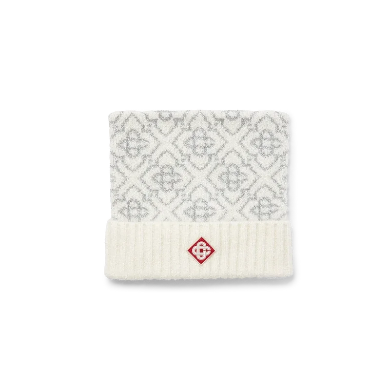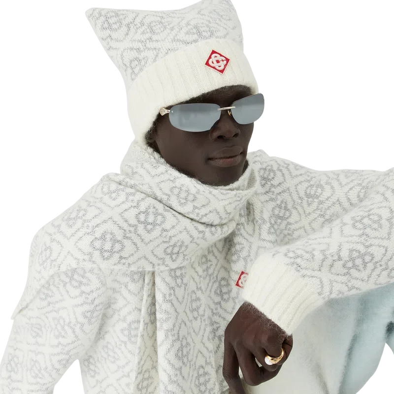 Il berretto da sci è un modello raffinato realizzato in tessuto di mohair con il motivo Monogram bianco e grigio della Maison, ispirato ai disegni del gelo sulle finestre delle tradizionali case coloniche giapponesi. Ispirato ai cristalli di neve sui boschetti di bambù, il design incarna l’eleganza di Apras-Sport.