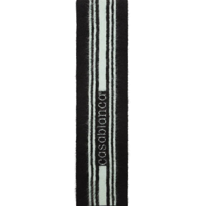 La sciarpa in mohair a righe è un modello lavorato a maglia realizzato in tessuto di mohair. Rifinita con il logo Casablanca e dettagli a righe su tutta la lunghezza della sciarpa.