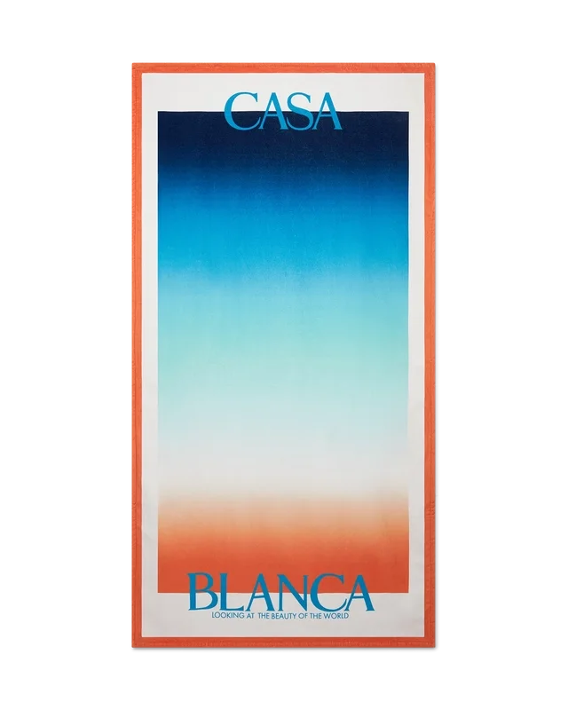L’asciugamano da spiaggia Gradient è un modello stampato realizzato in tessuto di spugna di cotone con la stampa sfumata della stagione. Rifinito con il logo sovrapposto della Maison e un bordo blu navy.