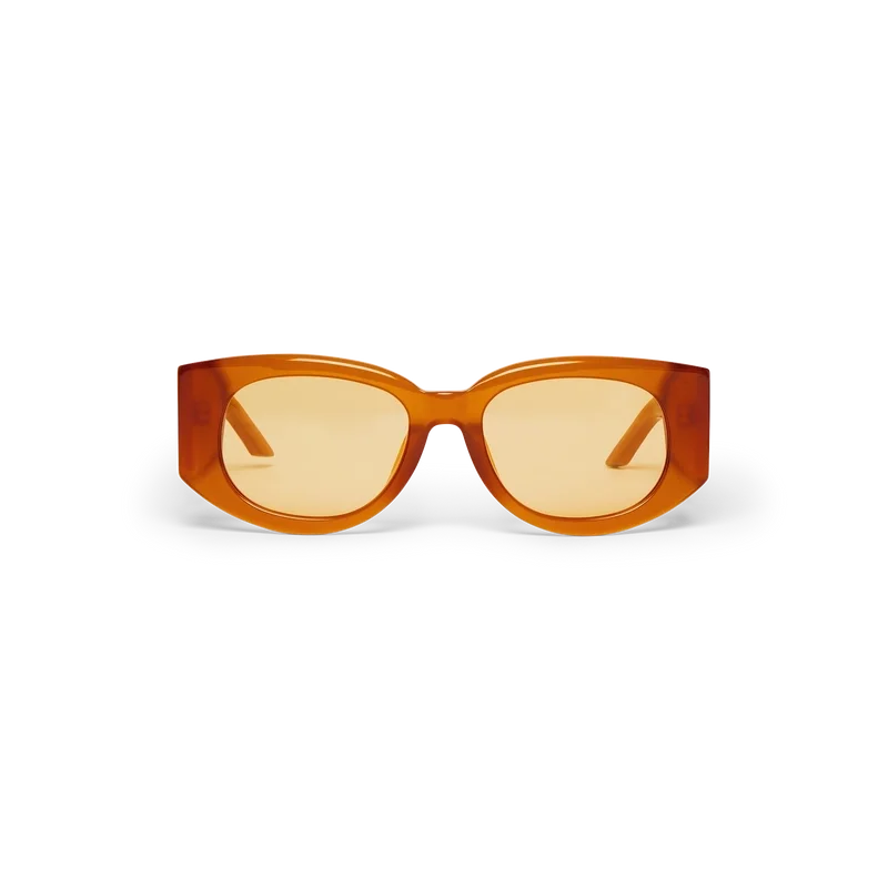 La struttura in acetato arancione acceso degli occhiali da sole Memphis caratterizza questi occhiali da sole dalla montatura rettangolare. Qui, il logo Diamond Monogram Casablanca è posizionato sulle aste. Le lenti sfumate offrono una protezione UV al 100% e il modello è completo di cofanetto Casablanca, panno per la pulizia e libretto di garanzia.