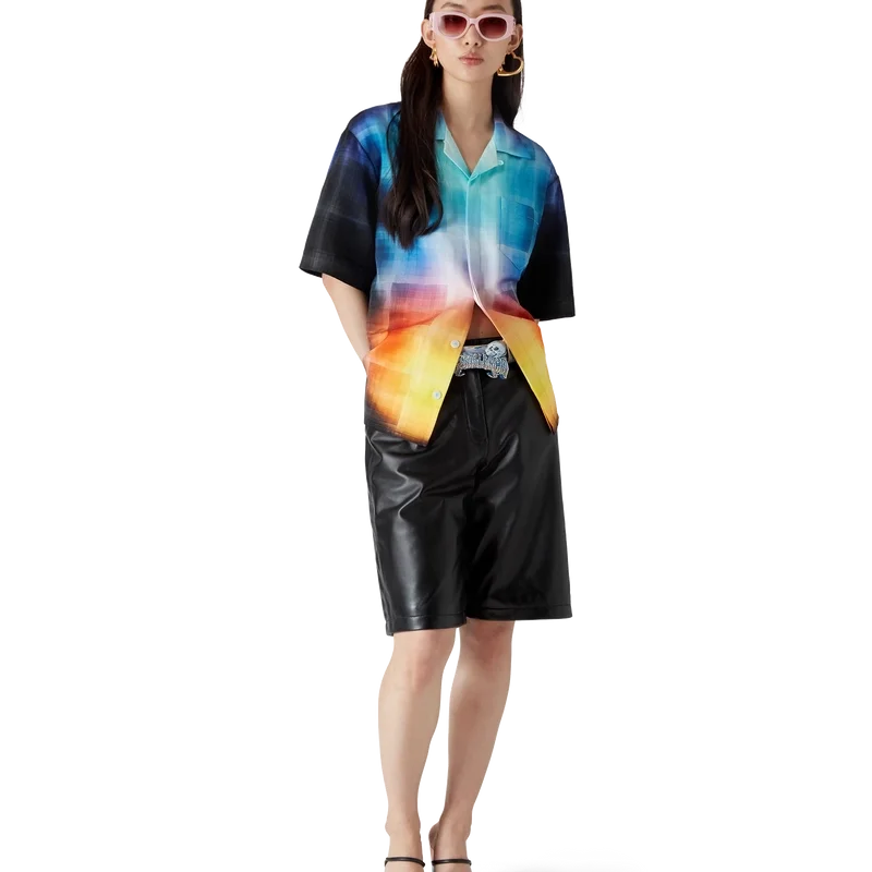 Camicia a maniche corte in misto viscosa con motivo a quadri sfumati in pantaloncini