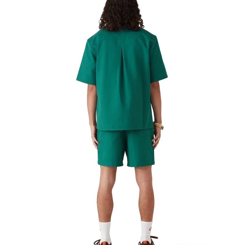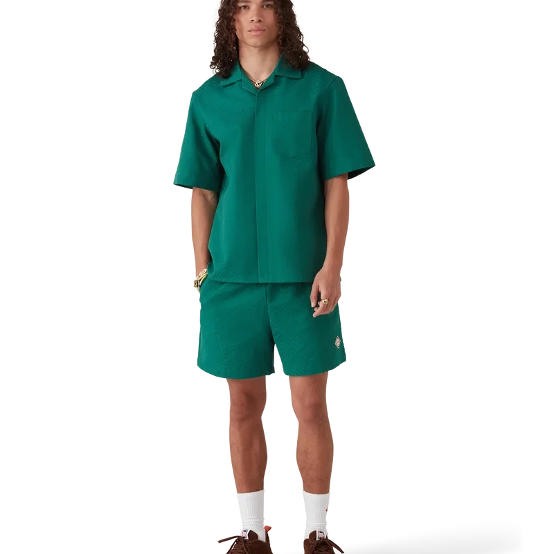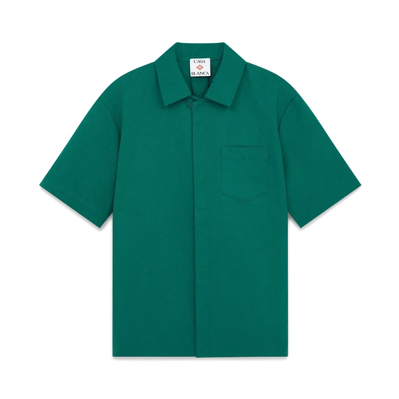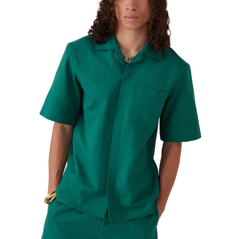 La camicia jacquard in cotone con monogramma a maniche corte è un modello classico realizzato in tessuto jacquard di cotone con monogramma. Rifinita con colletto cubano, chiusura con bottoni, bottoni in corozo con logo CC intrecciato e piega rovesciata sul retro.