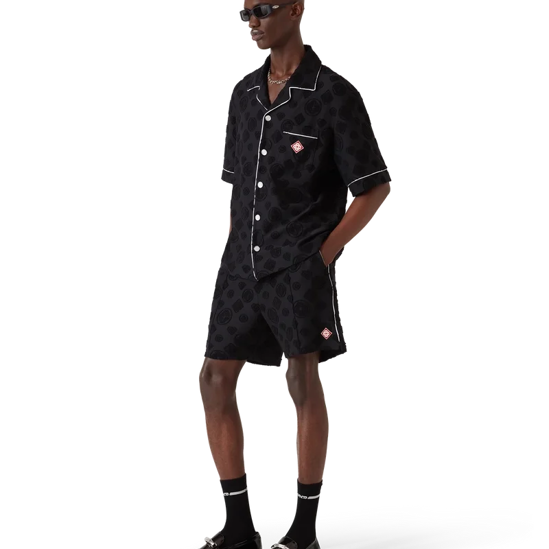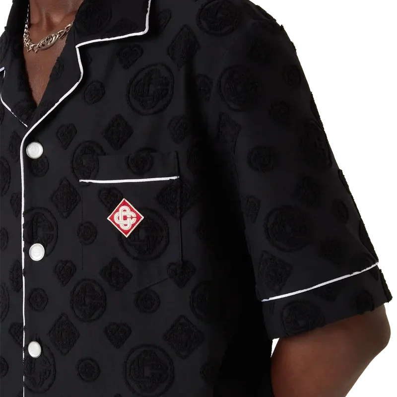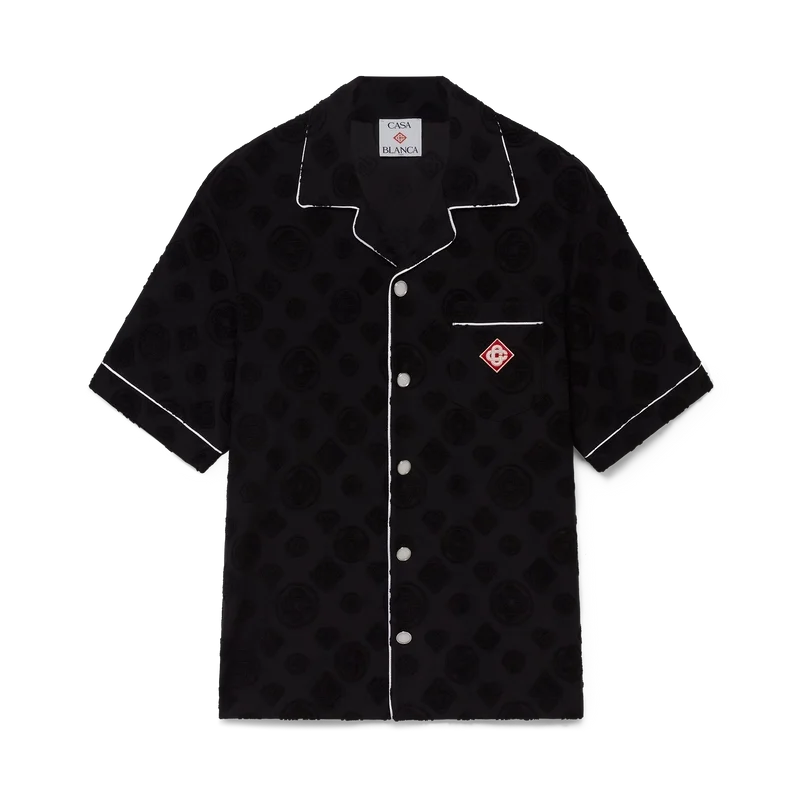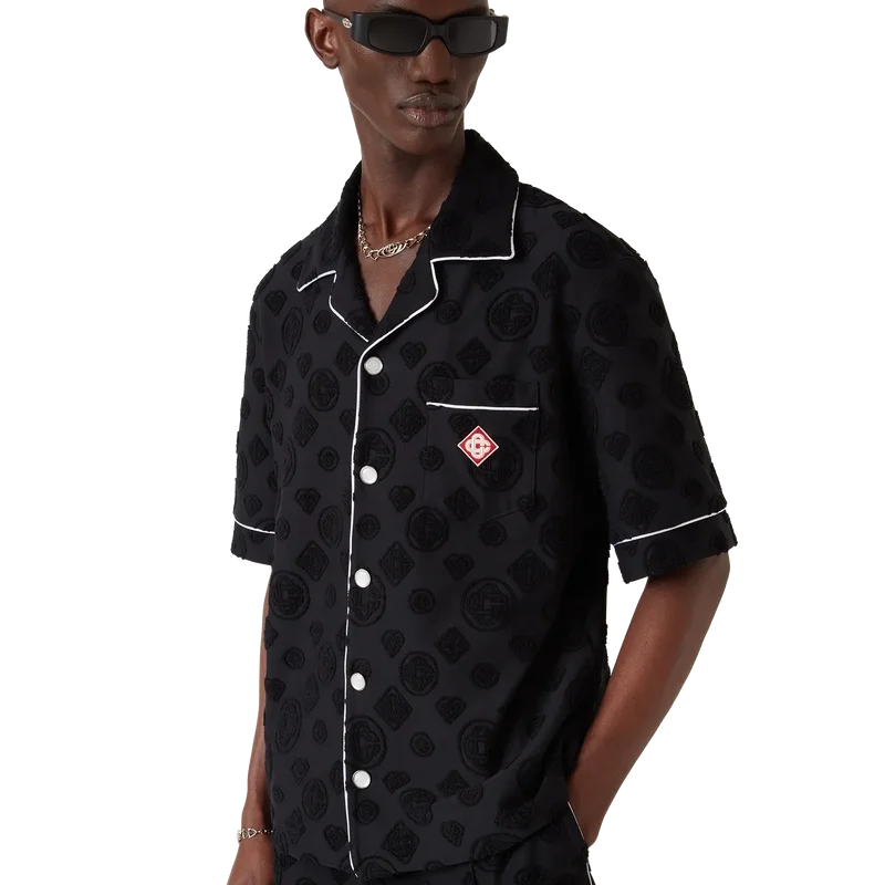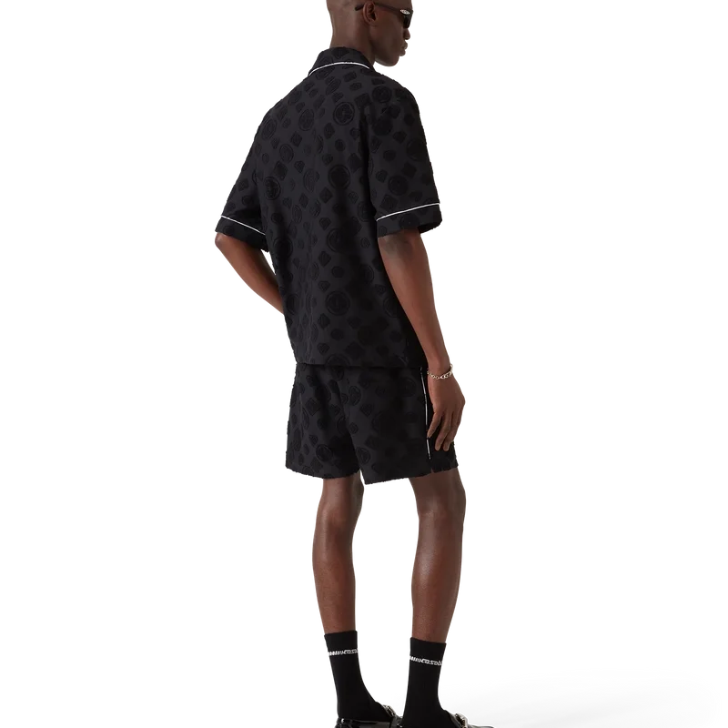 La camicia a maniche corte in spugna Monogram è un modello caratterizzato dalla stampa Diamond Monogram, segno distintivo della Maison. Completata da taschino sul petto, bordino a contrasto, bottoni perlati con bordo dorato e colletto cubano.